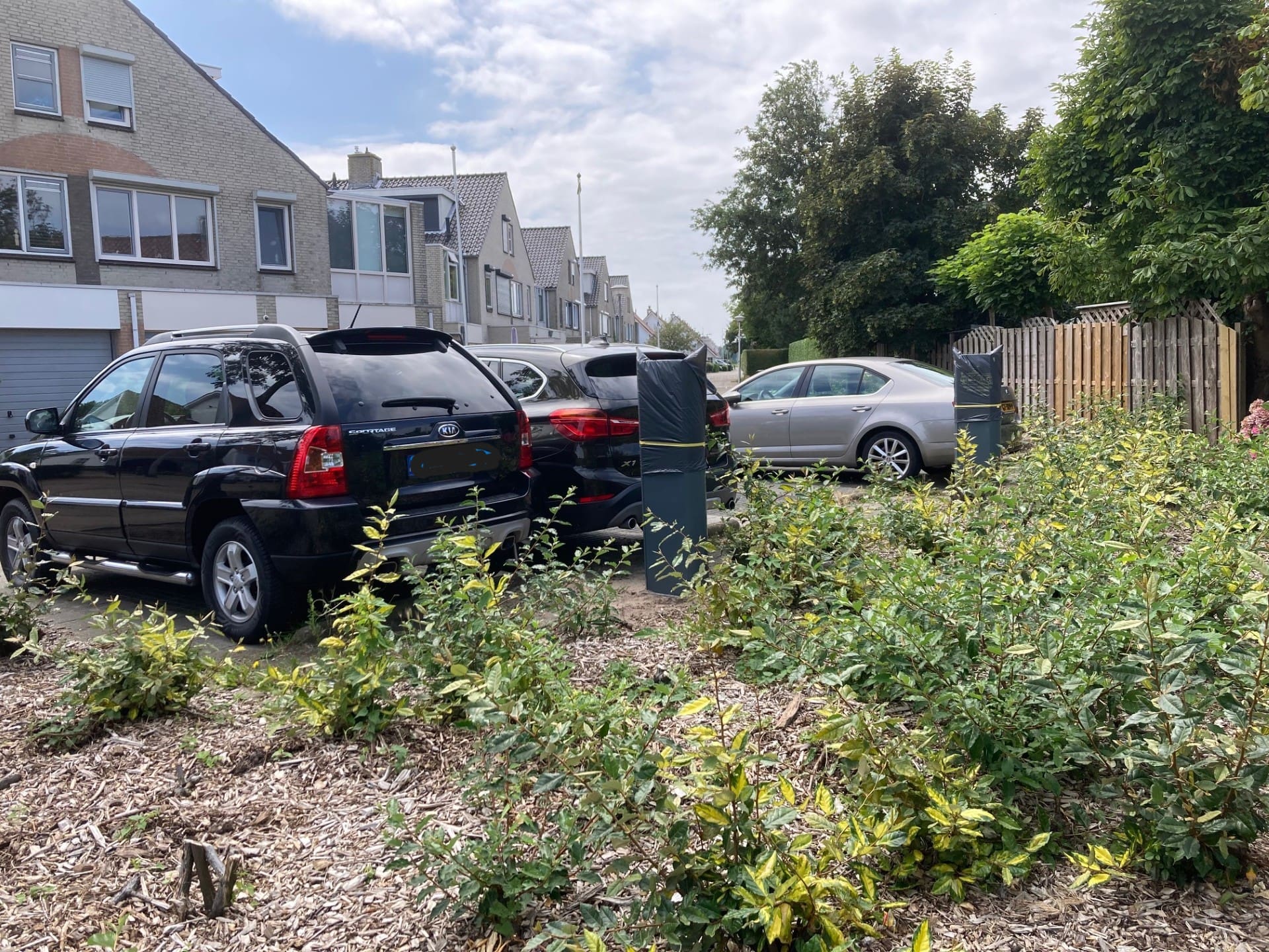 2 plekken werden opgeofferd om plantsoen van te maken, de aanbiedplaats voor vuilnisbakken kwam te vervallen en er kwam nog een laadpaal bij.