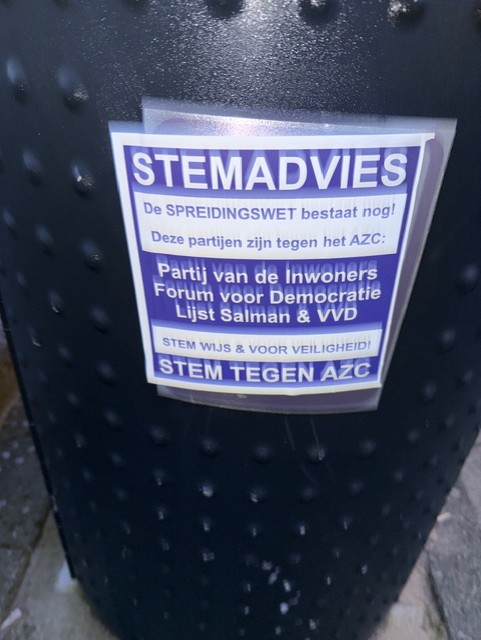 Noordwijk – Op meerdere plekken in Noordwijk zijn posters opgehangen waarin wordt opgeroepen om tegen de komst van een asielzoekerscentrum (AZC) te stemmen. Op de posters staat een zogenoemd “stemadvies” waarin enkele lokale politieke partijen worden genoemd die volgens de poster tegen een AZC zijn.