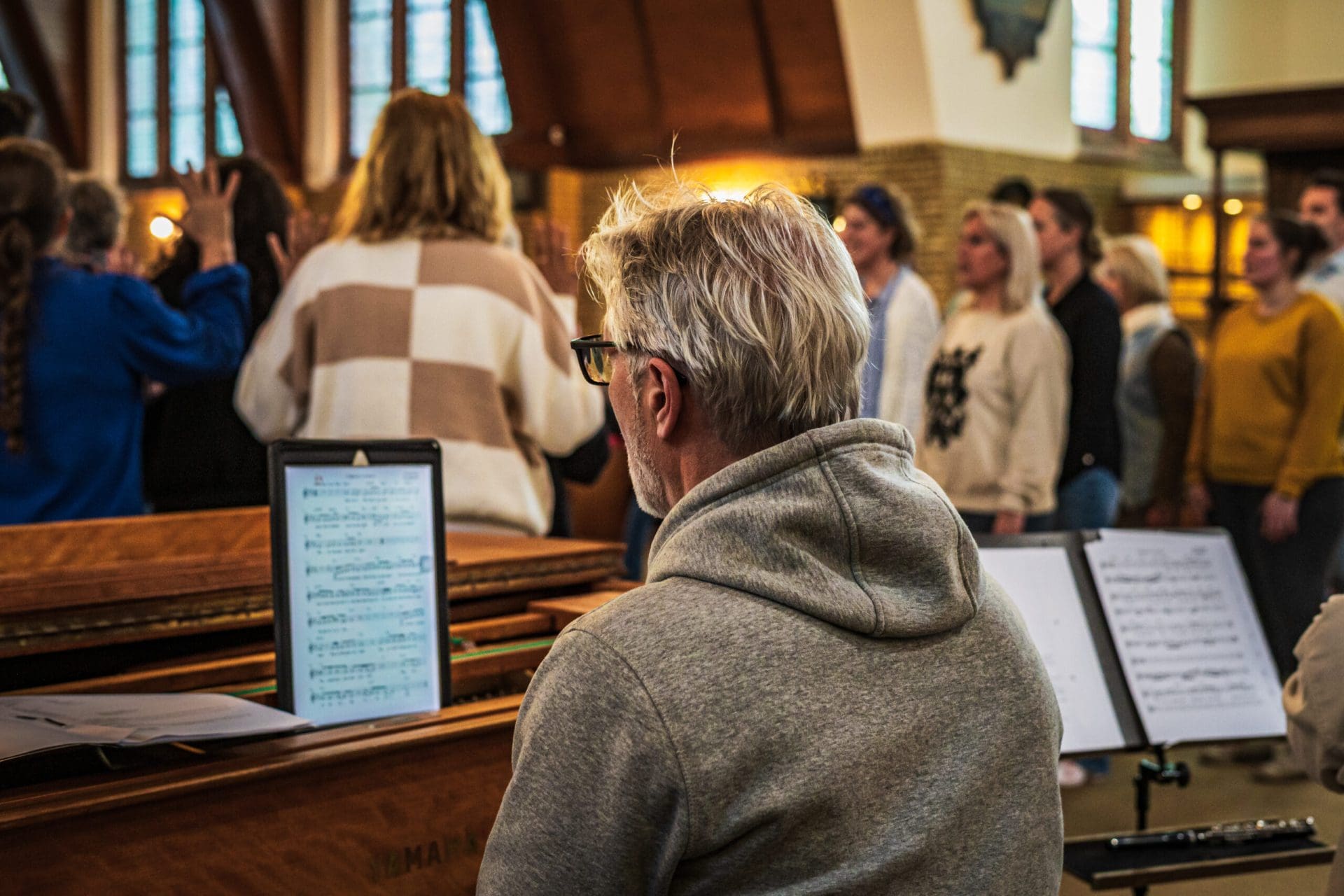 Hillegom – In de Maartenskerk in Hillegom wordt druk gerepeteerd voor het muziektheater Leve de Vrijheid. Dat wordt op Bevrijdingsdag, 5 mei, driemaal opgevoerd in die kerk.