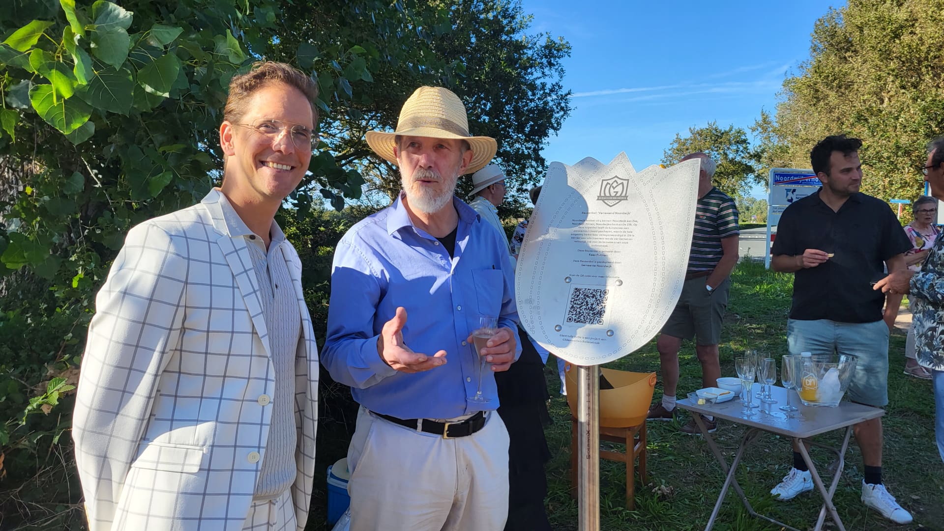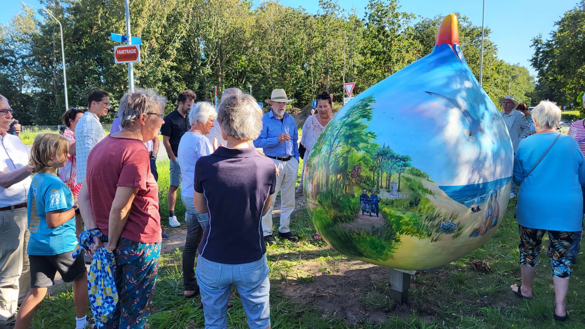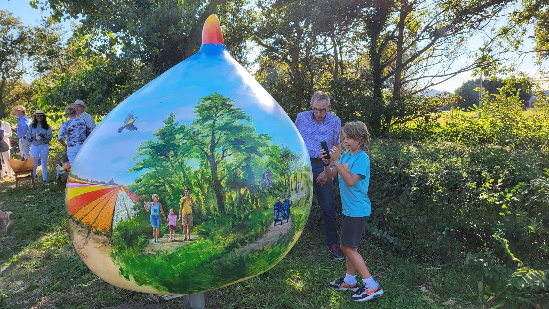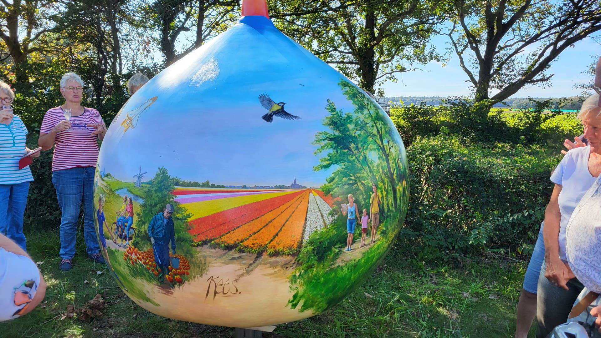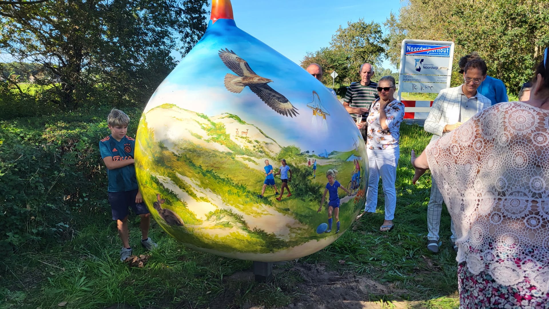 Noordwijk/Noordwijkerhout – Op de Langevelderweg in Noordwijkerhout is woensdagmiddag de Reuzenbol ‘Verrassend Noordwijk’ onthuld. Het is de 61ste Reuzenbol in zijn serie en werd onthuld door wethouder Roberto ter Hark.