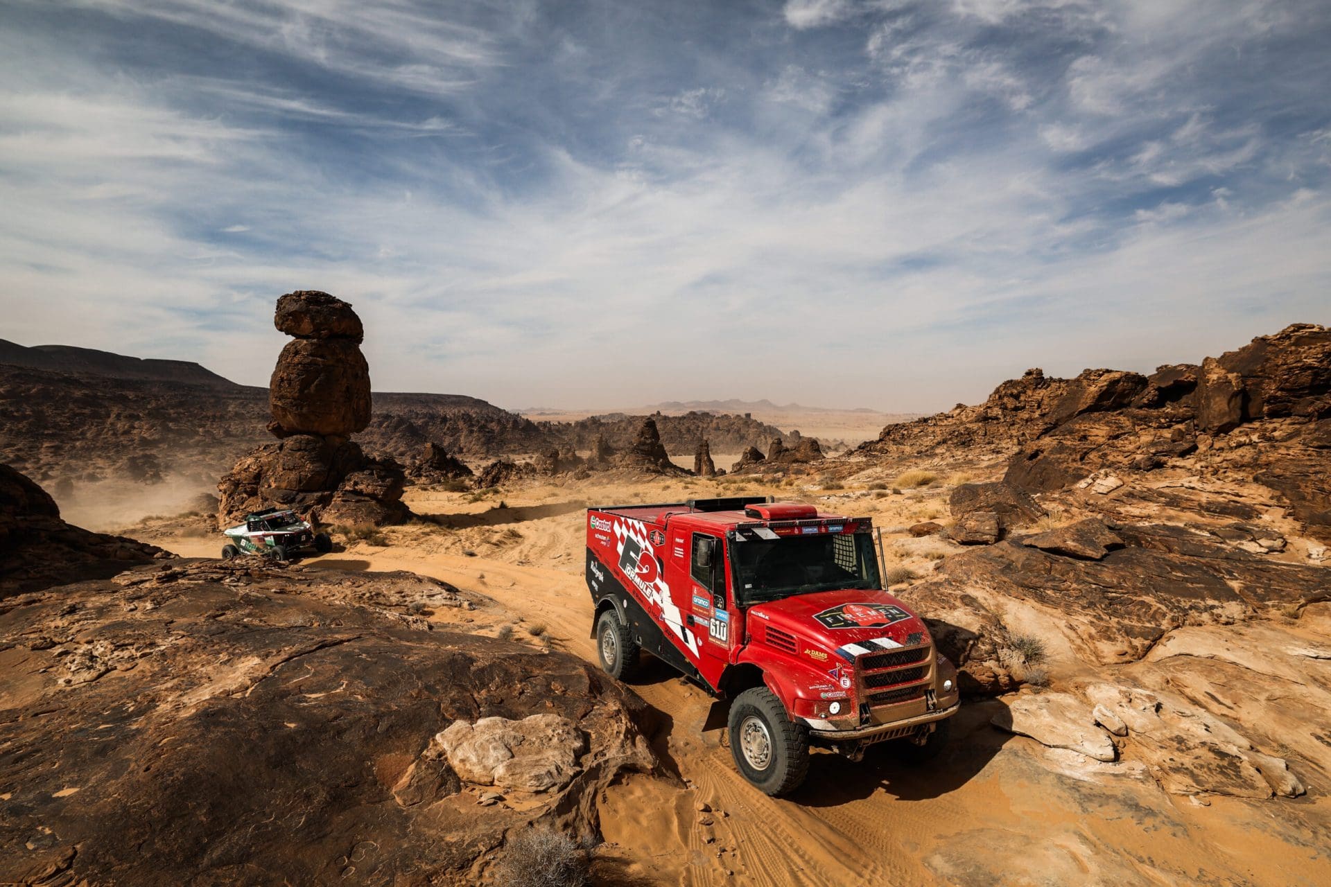 Zondag wordt de Dakar Rally vervolgd met de zevende etappe. Deze etappe is speciaal, omdat de motoren en de auto’s/trucks een andere route rijden. Dit maakt het navigeren voor de trucks lastiger, omdat er dan geen bandensporen van de motoren meer te volgen zijn. Daarnaast is de etappe ook aangepast, omdat er zware regenval wordt verwacht en de veiligheidshelikopters niet op tijd bij de start zouden kunnen zijn. De trucks rijden een route van 418 kilometer van en naar Al Duwadimi.
