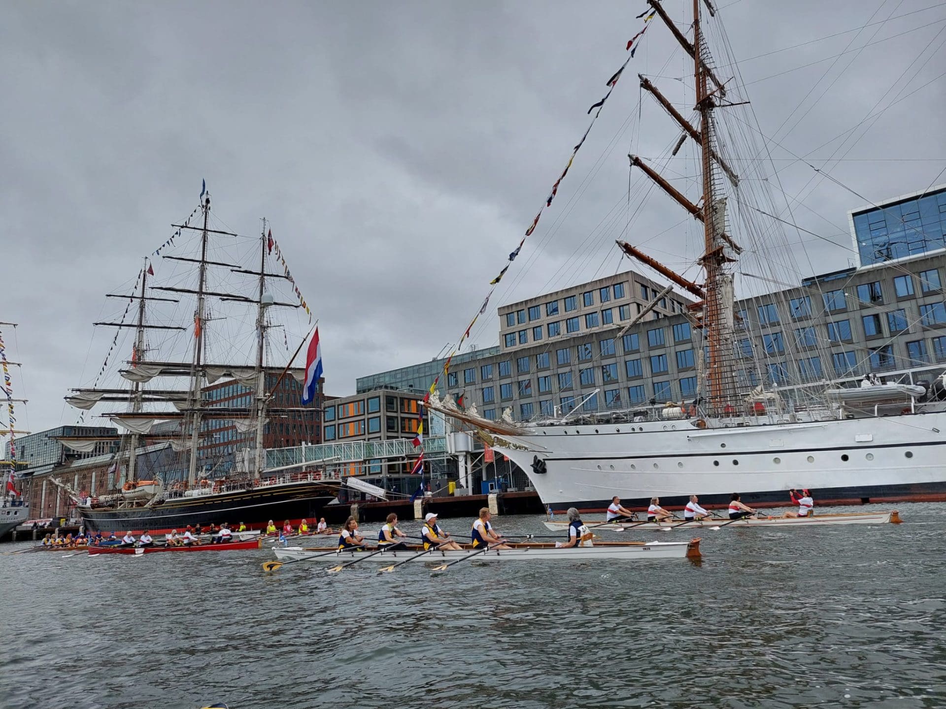 Lisse – Roeivereniging Iris uit Lisse heeft deze week deelgenomen aan SAIL Amsterdam. Vijftien Lissese roeiers mochten meedoen met het traditionele ‘roeierssaluut’, waarbij negentig roeiverenigingen uit het hele land langs de grote schepen roeien om hun respect te tonen.