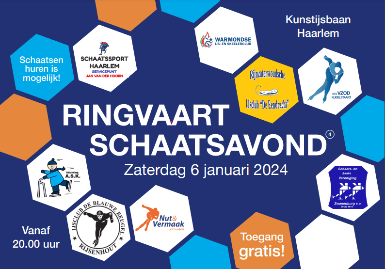 Warmond/Haarlem – De Warmondse IJs- en Skeelerclub organiseert op zaterdagavond 6 januari de Ringvaartschaatsavond op de ijsbaan van Haarlem. Dat doen ze met de vijf andere ijsclubs die langs de Ringvaart van de Haarlemmermeer liggen. Om de schaatssport te promoten is een programma samengesteld voor jong en oud, geoefend en minder geoefend. Deelname is gratis. Het programma:
