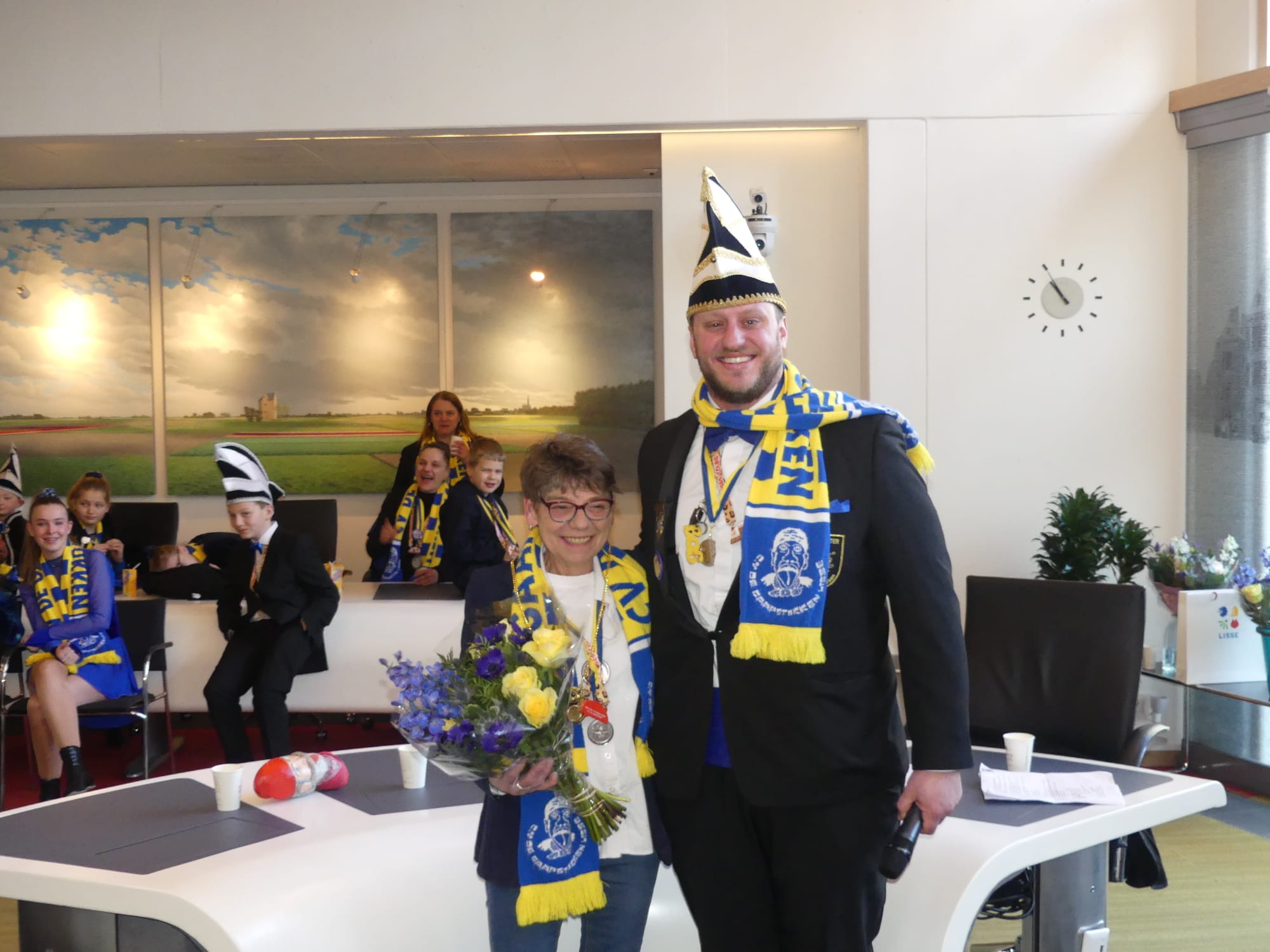 Met twee carnavalswagens kwam het Prinsenpaar zaterdagochtend richting het gemeentehuis gereden. Eenmaal in de raadszaal, vond de traditionele sleuteloverdracht plaats. Tijdens de overdracht vroeg jeugdprins Stef aandacht voor het verbeteren van de hobbelige fietspaden op de Heereweg richting Sassenheim en de Stationsweg langs de Keukenhof. Prins Sjoerd doelde in zijn toespraak op zijn wens voor een eigen onderkomen voor de carnavalsvereniging in Lisse.