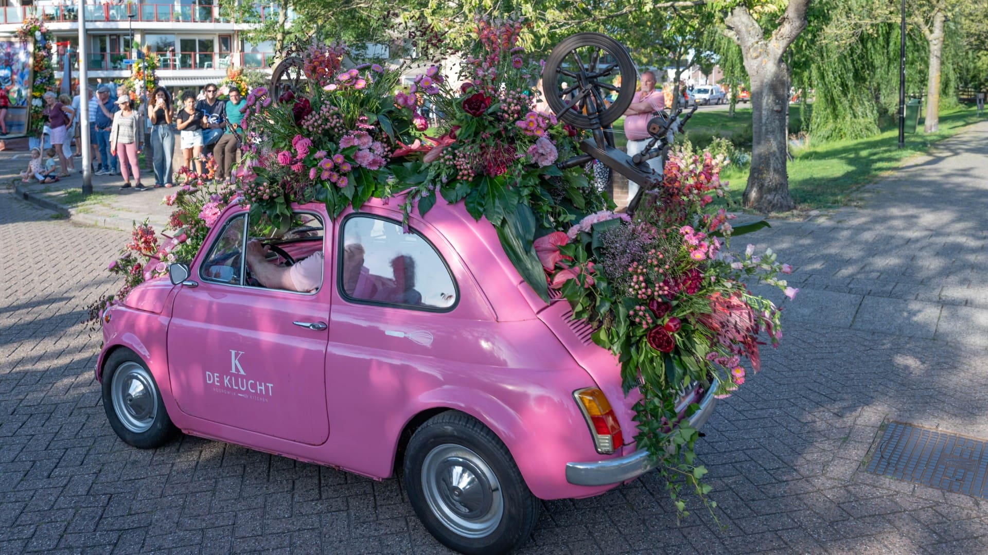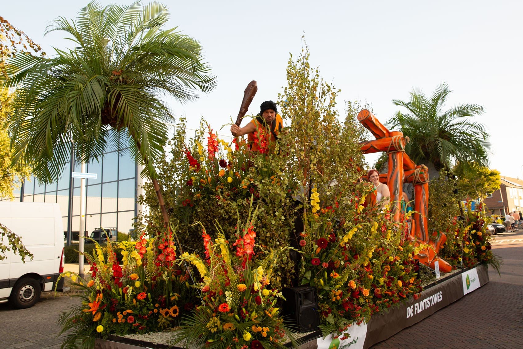 Negen kleurrijk versierde praalwagens met figuranten, en een groot aantal kleurrijk opgestoken personenauto’s werden langs de route bewonderd door het publiek. Er zijn zo’n 300.000 bloemen en planten gebruikt om de praalwagens, muziekwagens en andere voertuigen mee te versieren. Naast de wagens gebaseerd op sprookjes kwamen ook wagens uit vervlogen tijden voorbij, zoals de Flintstones en een praalwagen over het polygoon-journaal.