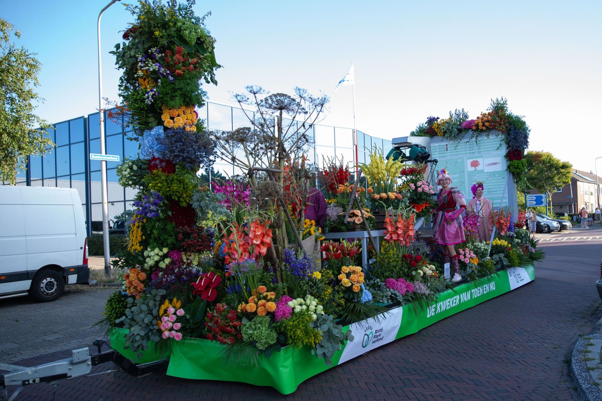 Traditiegetrouw eindigde de bonte stoet op de Koningin Wilhelmina Boulevard. Daar zijn de praalwagens nog tot zondagavond te bewonderen.