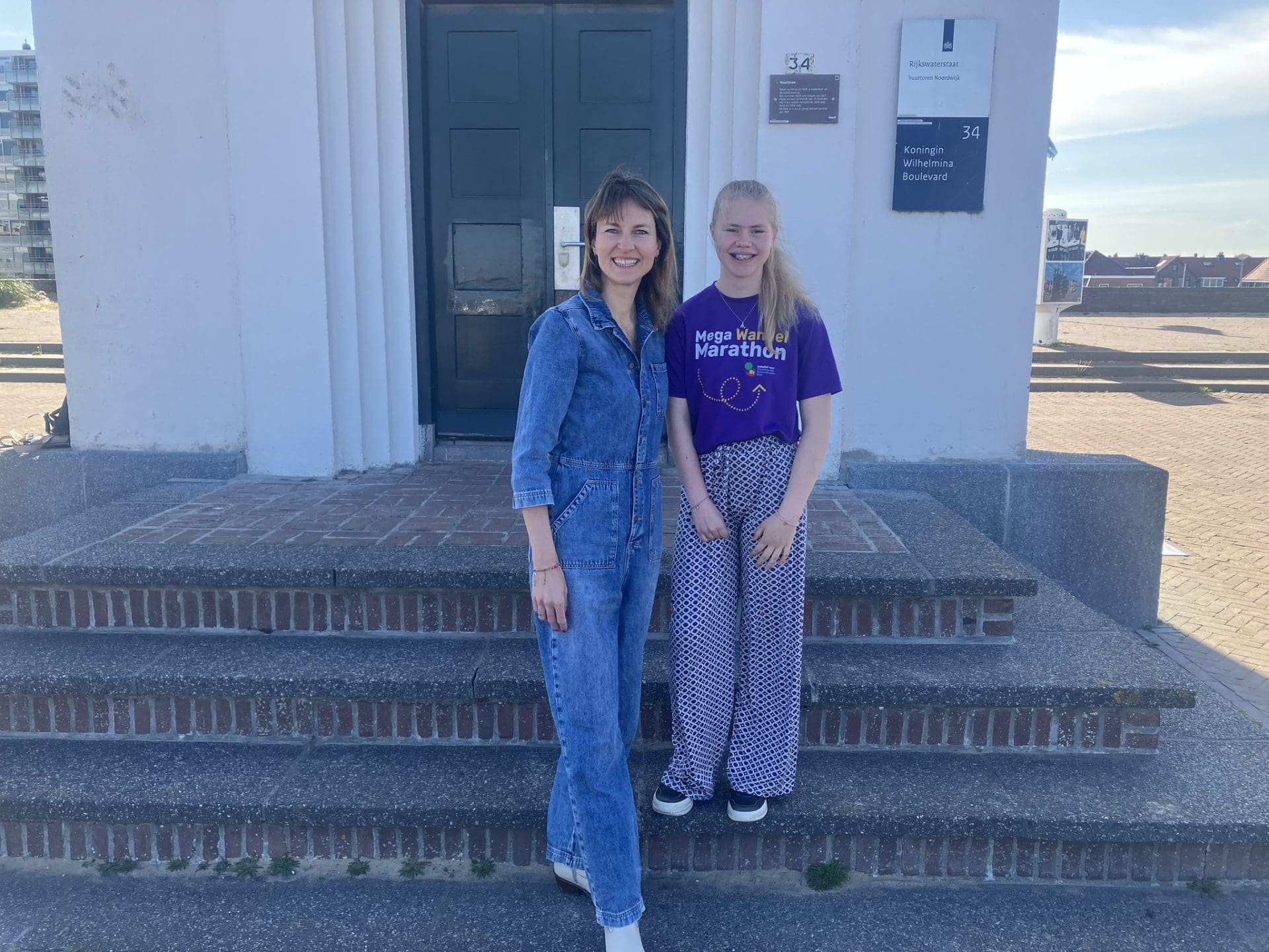 Noordwijk – Stichting het Gehandicapte Kind heeft zaterdag de vlag gehesen op de Noordwijkse vuurtoren om aandacht te vragen voor de Mega Wandel Marathon. De Mega Wandel Marathon is een evenement van de stichting waar iedereen aan mee kan doen, waaronder mensen met bijvoorbeeld een rolstoel. De vlag is gehesen door de Noordwijkse Emmie (13) en de nieuwe directeur van de landelijke stichting, Rebecca Gerritse, ook uit Noordwijk.