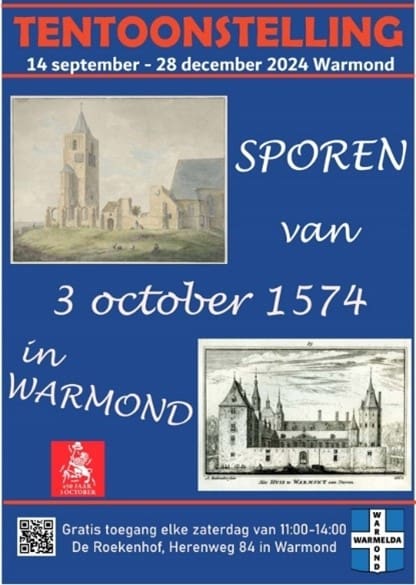 Dit alles komt aan bod in de tentoonstelling “Sporen van 3 october 1574 in Warmond” in de Roekenhof (Herenweg 84), van 14 september tot en met 28 december. Gratis toegankelijk op zaterdag van 11.00 – 14.00 uur. Op 14 en 15 september gelden vanwege Open Monumentendag ruimere openingstijden.