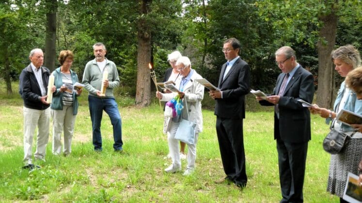 Noordwijk – In het centrum van Noordwijk-Binnen hebben een kleine vijftig gelovigen zondagochtend de jaarlijkse Sint Jeroensommegang gelopen. Voorgangers waren Joost de Bruijn namens de Protestantse Gemeente Noordwijk en pastoor Martien Straathof namens de Parochie Sint Maarten, waaronder de RK Sint Jeroenskerk valt.