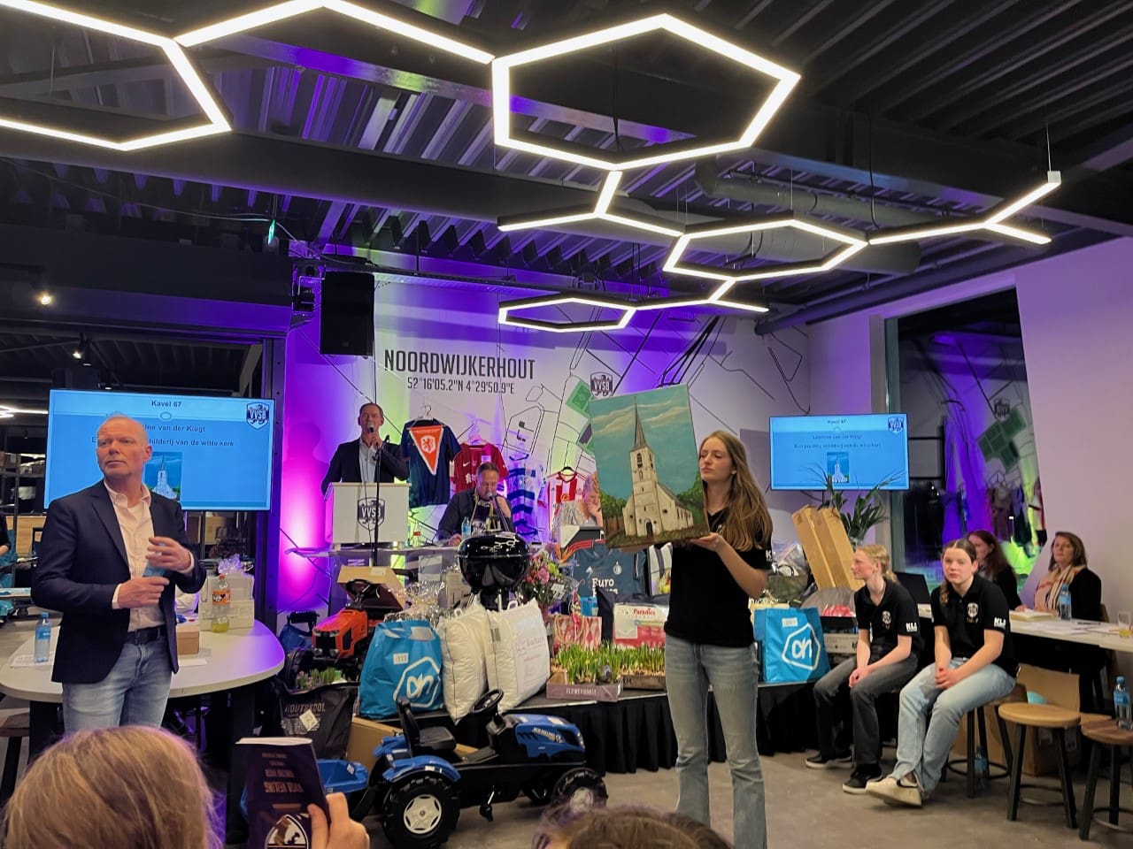 Noordwijkerhout – De door VVSB 1 met 3-2 gewonnen topper tegen Blauw Geel kreeg zaterdagavond een prettig vervolg met de paasveiling van de club. Na afloop stond er een opbrengst van 112.000 euro op de teller. Topper was een Feyenoord-shirt met handtekeningen dat voor 1600 euro geveild werd. Verder waren er voetbalreisjes, diners, maar ook traditionele taarten. Alle spullen werden enthousiast geveild door de veilingmeesters Dick Bader en Jaap Meiland.