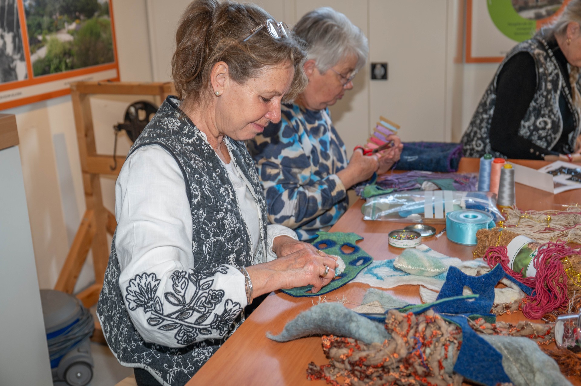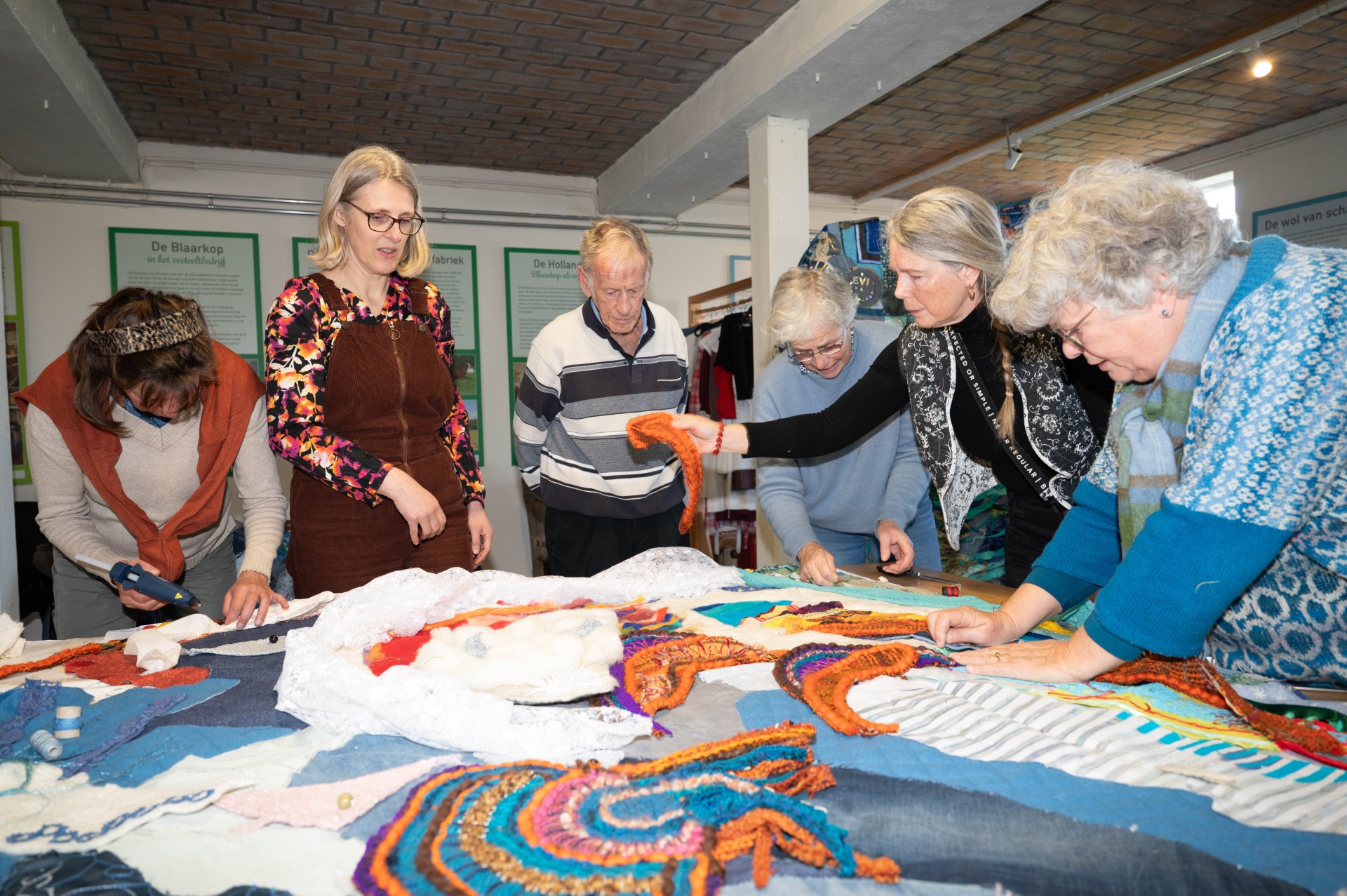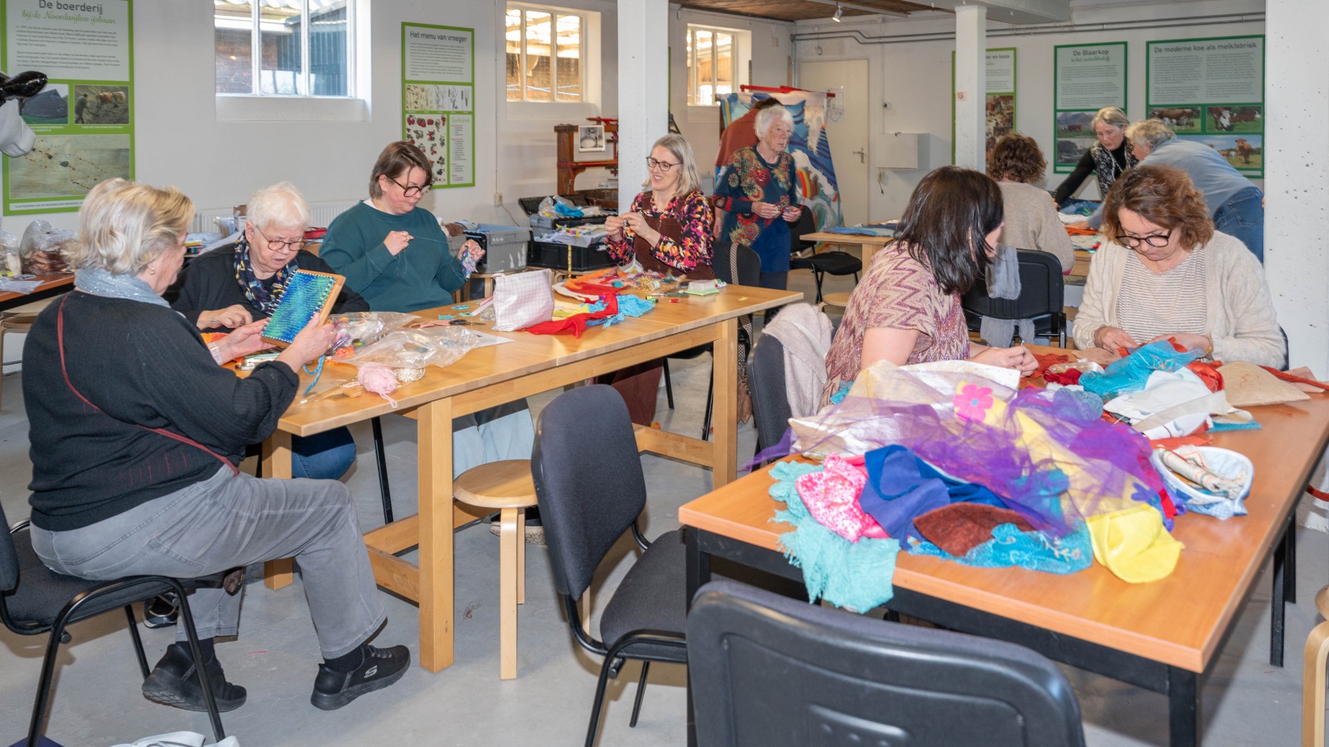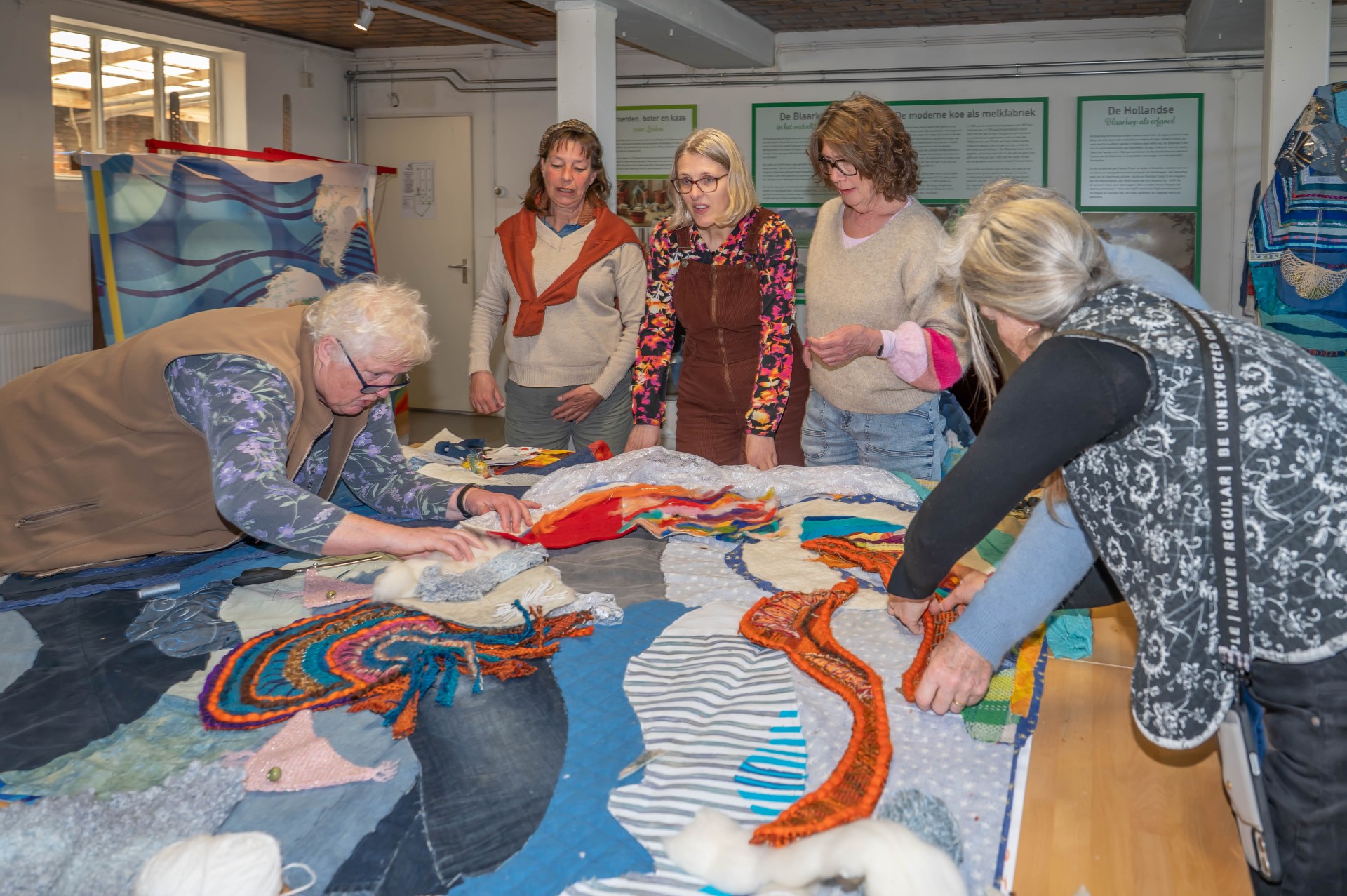 Noordwijk – Bij Streekmuseum Veldzicht hebben afgelopen week zo’n 30 dames uit de Bollenstreek gewerkt aan een groot textielproject. Zij maakten samen een paneel van 1,6 meter bij 1,6 meter voor een landelijk project over water in Nederland. Het paneel dat werd gemaakt bij Veldzicht stelt de branding voor.