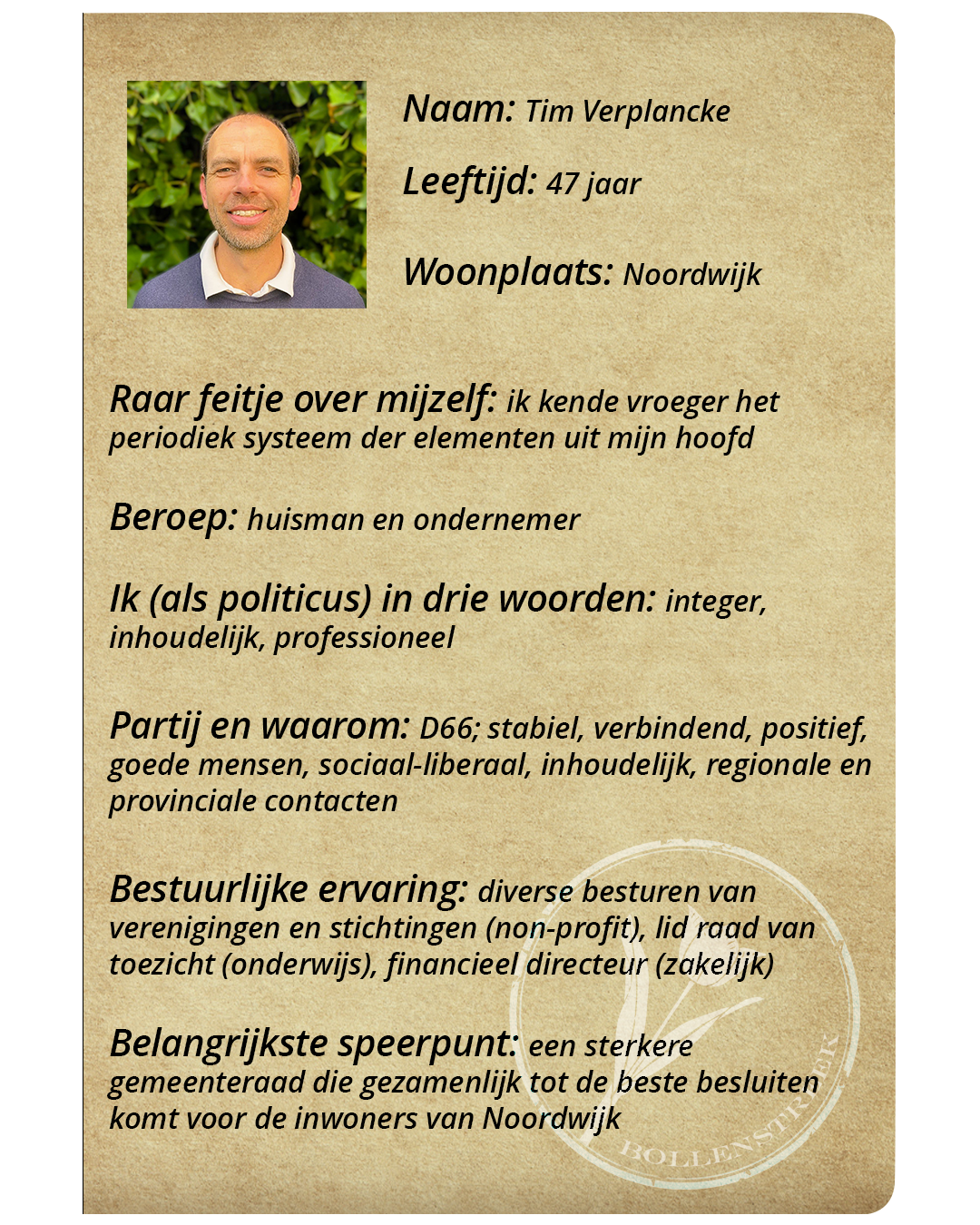 “De afgelopen jaren ben ik als inwoner van Noordwijk steeds vaker betrokken geraakt bij gesprekken naar aanleiding van concrete gemeentelijke plannen en besluiten. Wat mij daarbij opviel, is dat veel mensen wel vragen of zorgen hebben, maar het niet altijd eenvoudig vinden om die in een politieke of bestuurlijke context te plaatsen. Dat kost tijd en vraagt om uitleg.