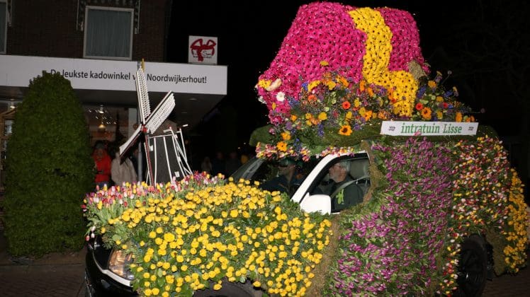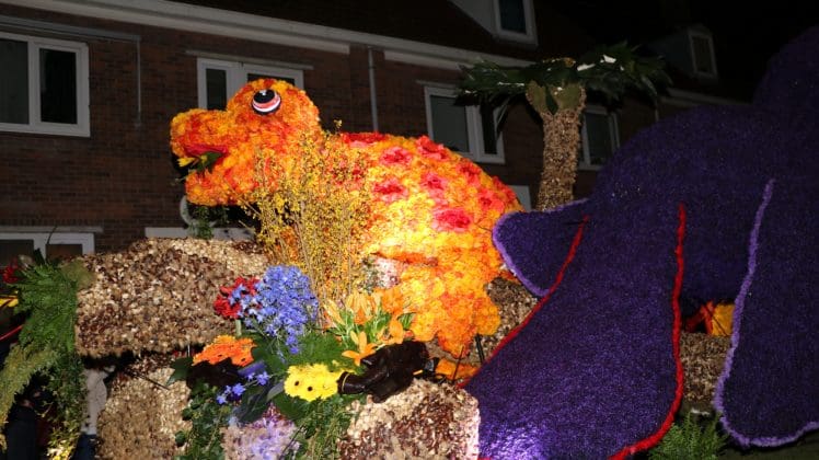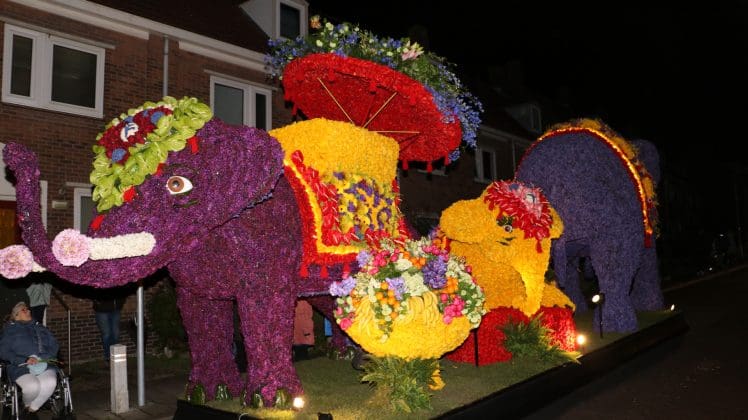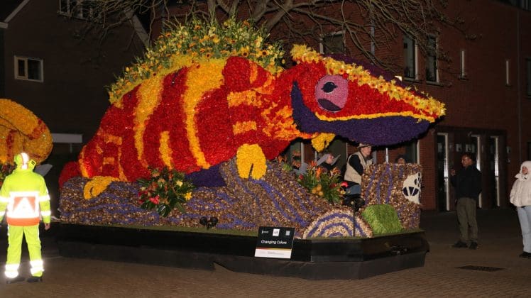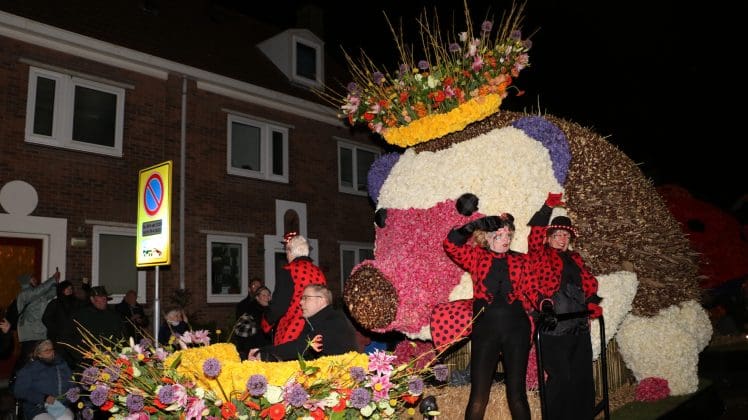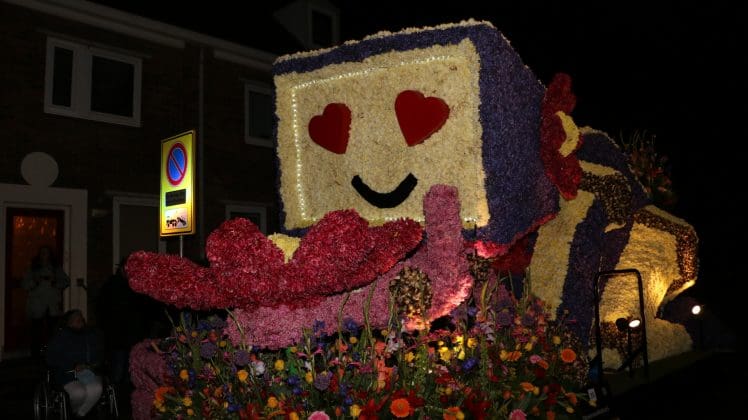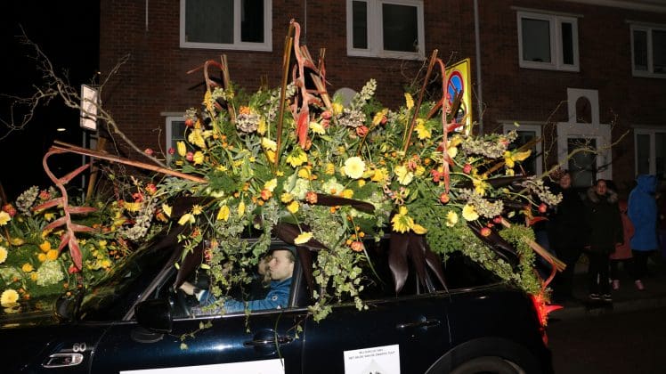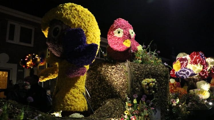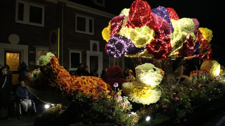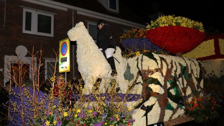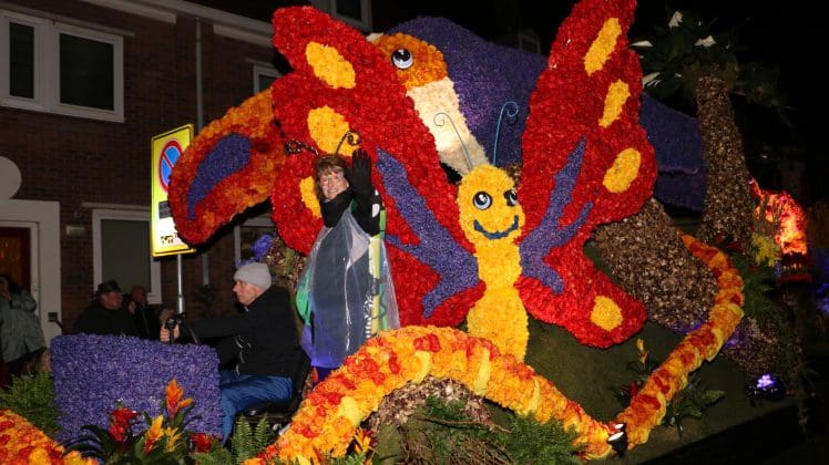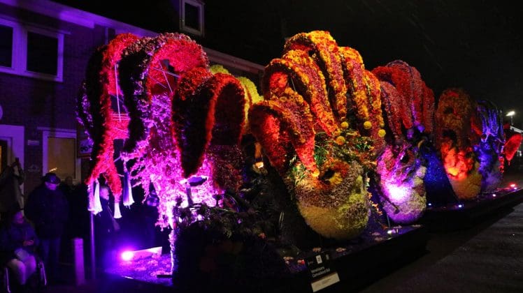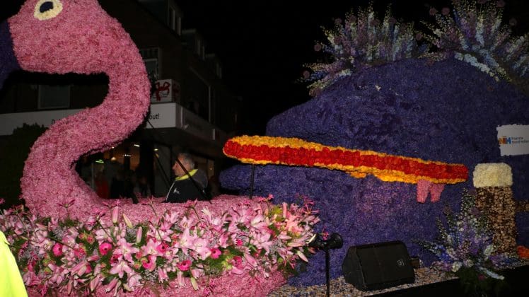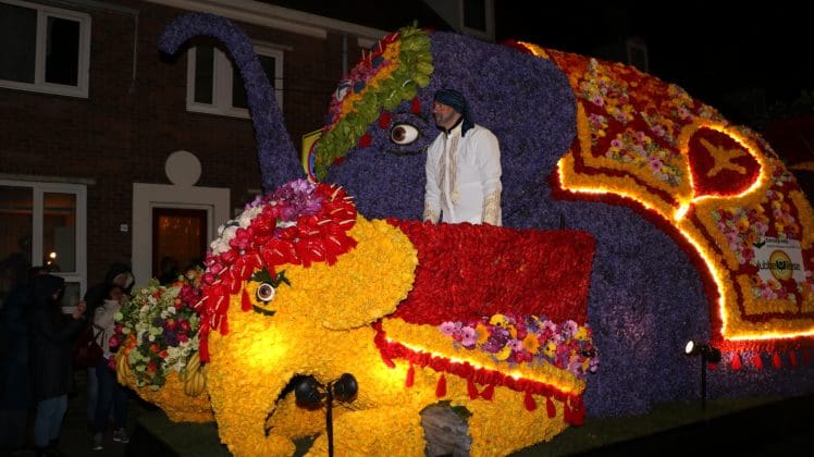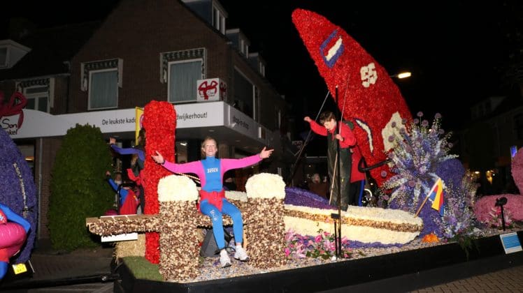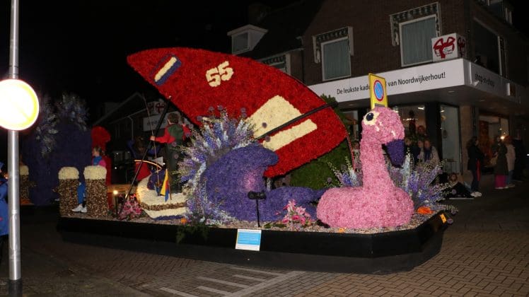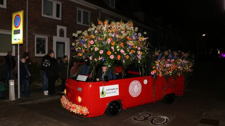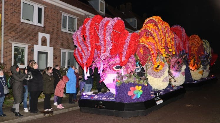 Noordwijkerhout – Met de Witte Kerk als prachtig decor trok het verlicht Bloemencorso van de Bollenstreek vrijdagavond door Noordwijkerhout. Het kon weer rekenen op de waardering van het publiek langs de kant. Het was koud, er waren iets minder hyacinten, maar het was weer prachtig.