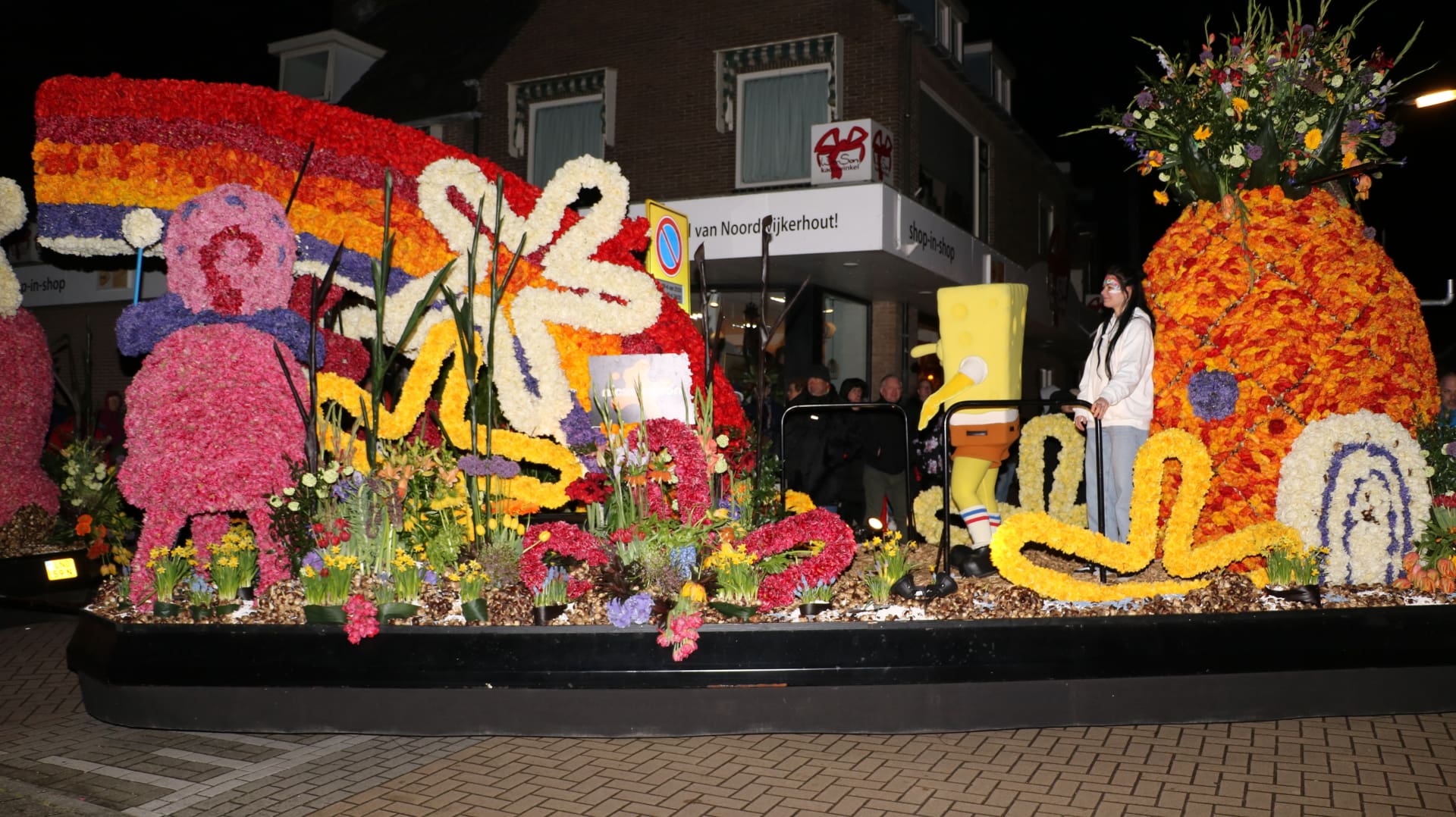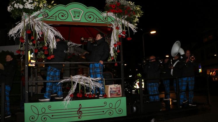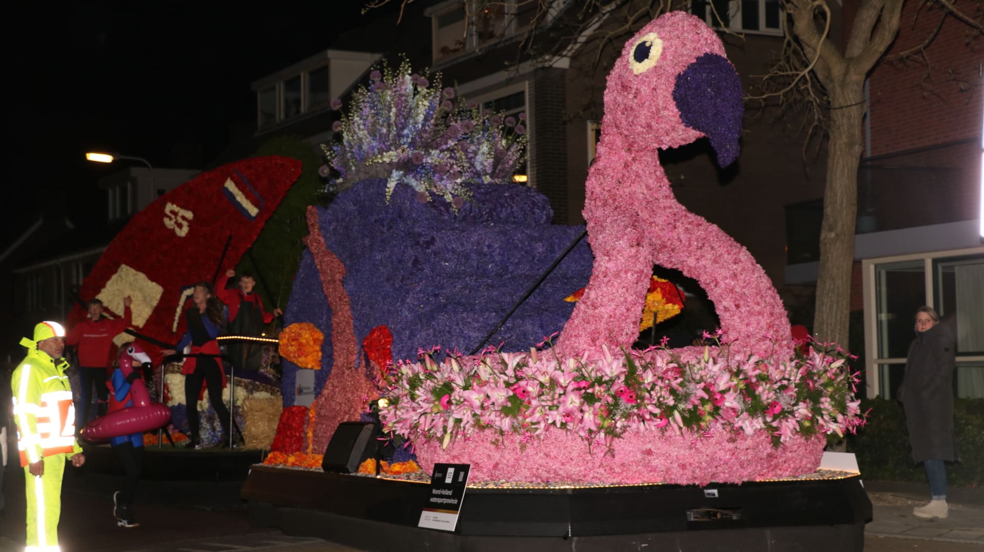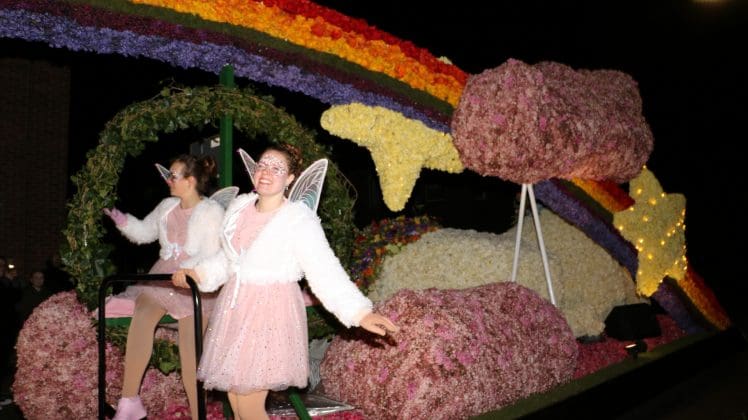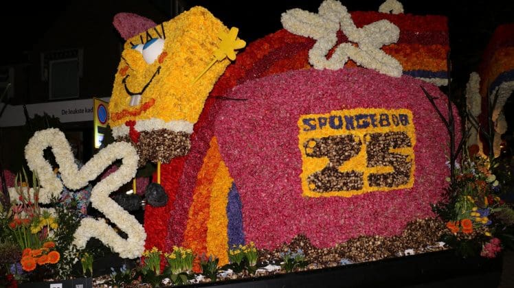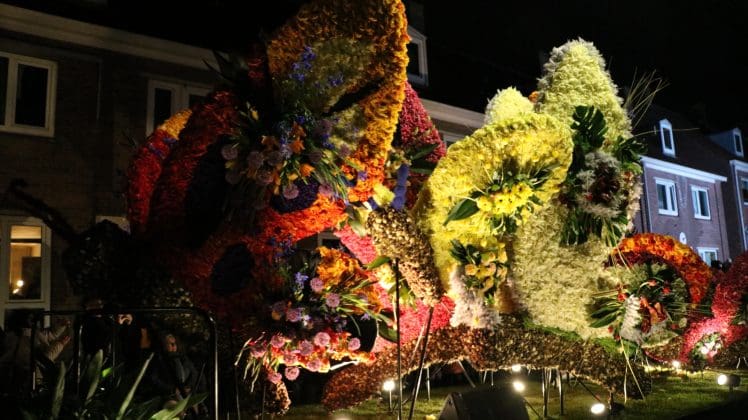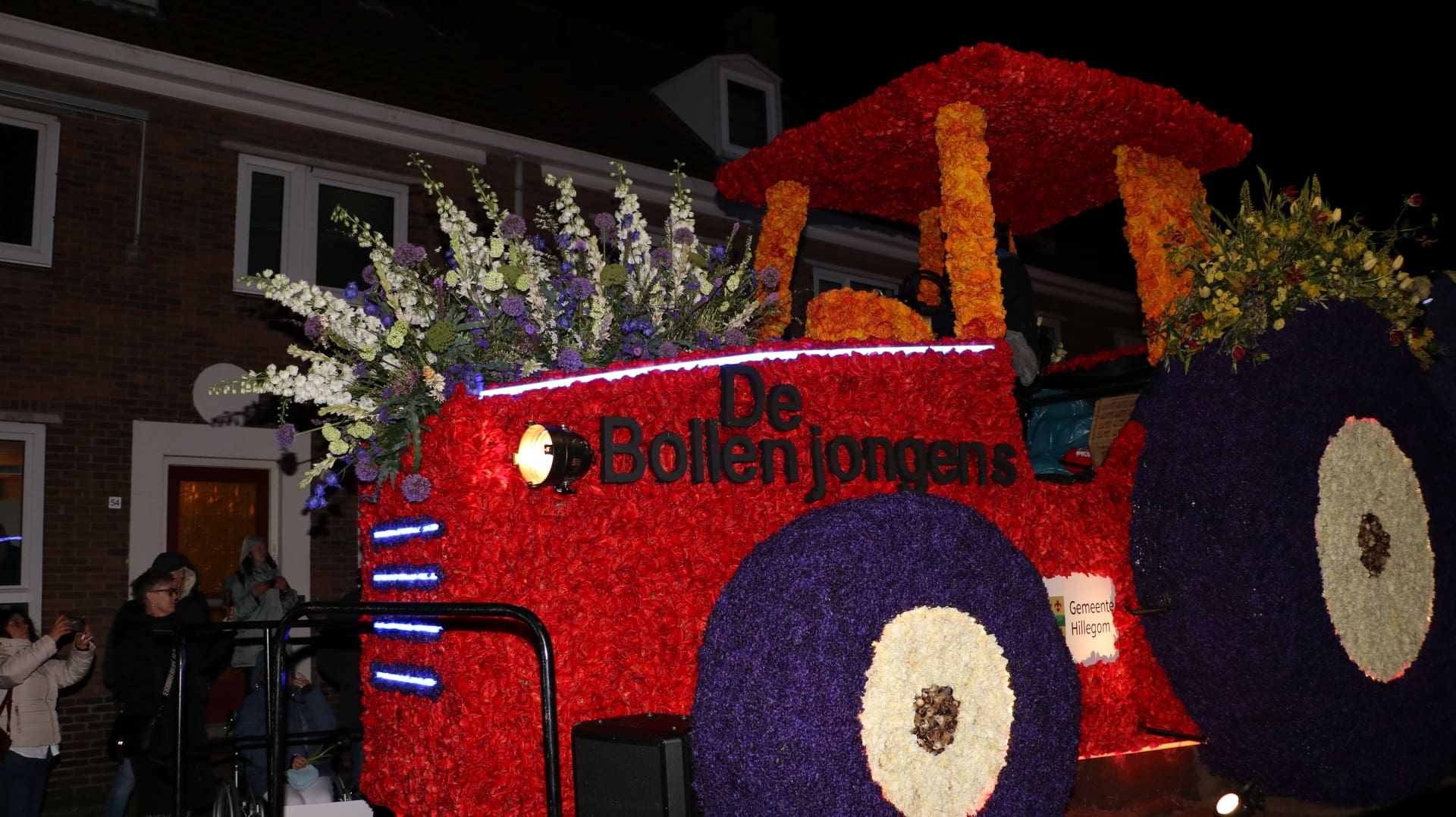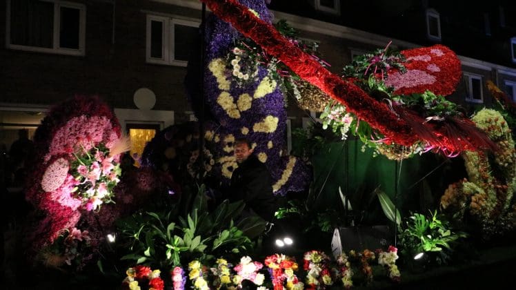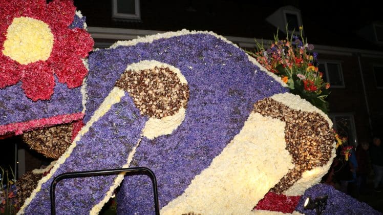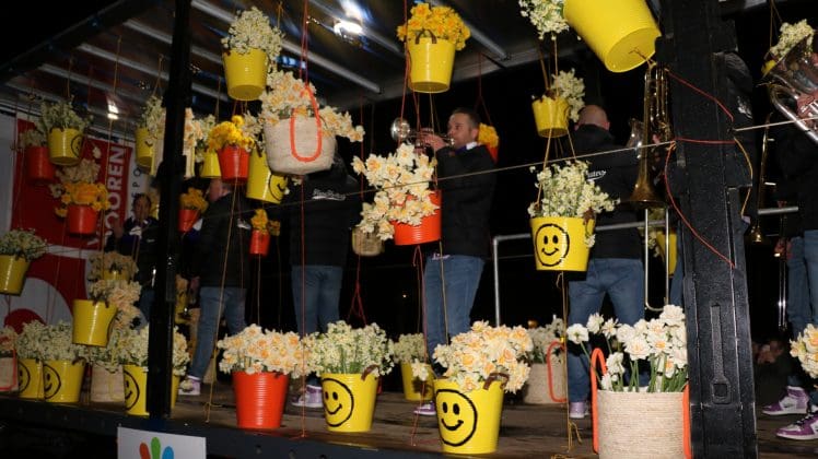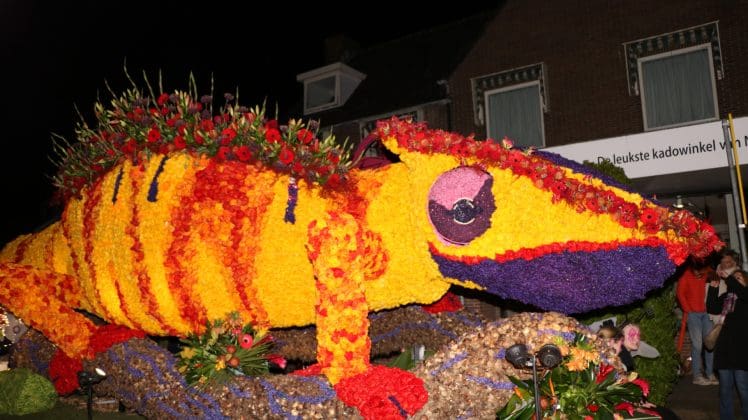 Noordwijkerhout – Met de Witte Kerk als prachtig decor trok het verlicht Bloemencorso van de Bollenstreek vrijdagavond door Noordwijkerhout. Het kon weer rekenen op de waardering van het publiek langs de kant. Het was koud, er waren iets minder hyacinten, maar het was weer prachtig.