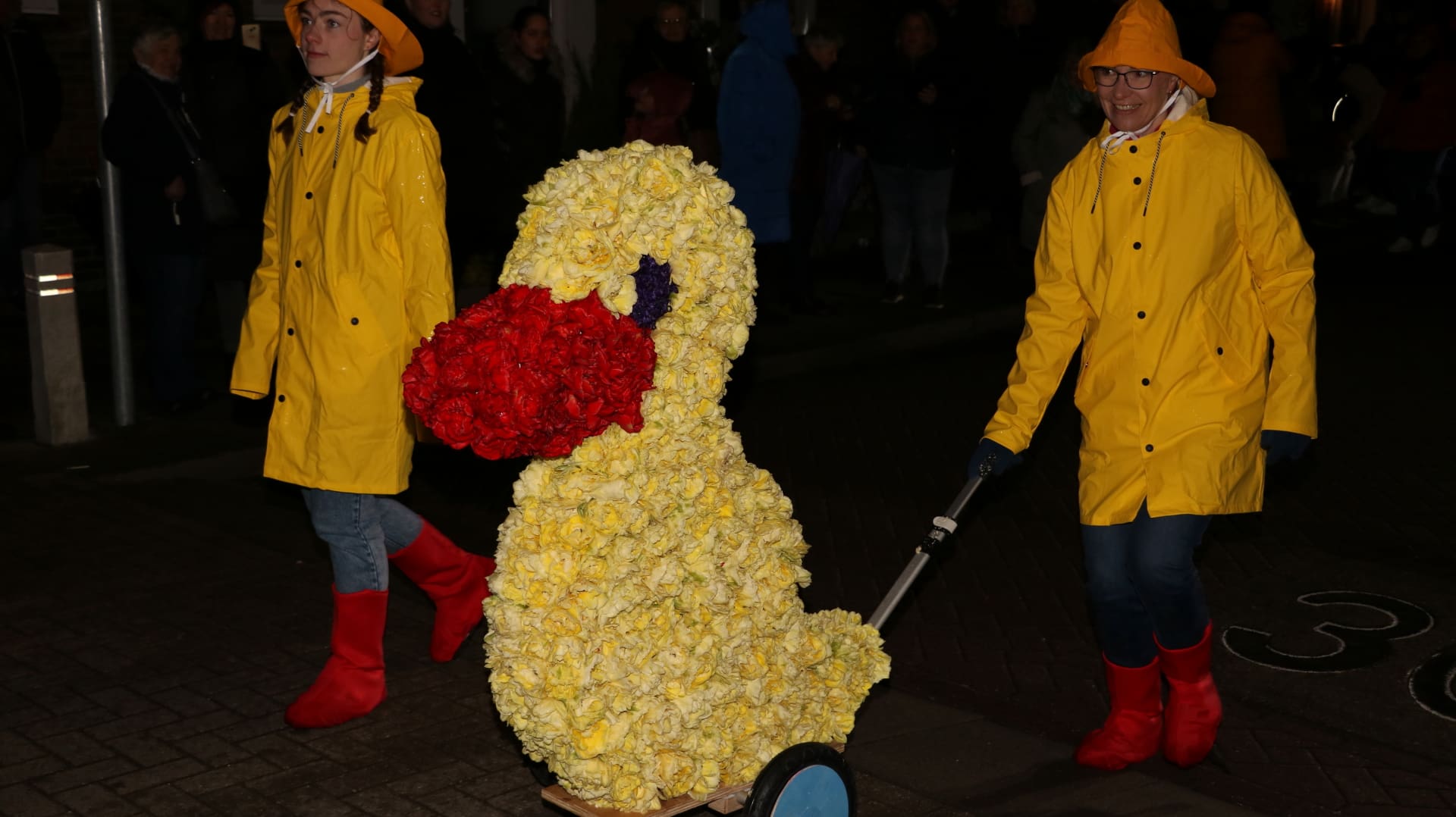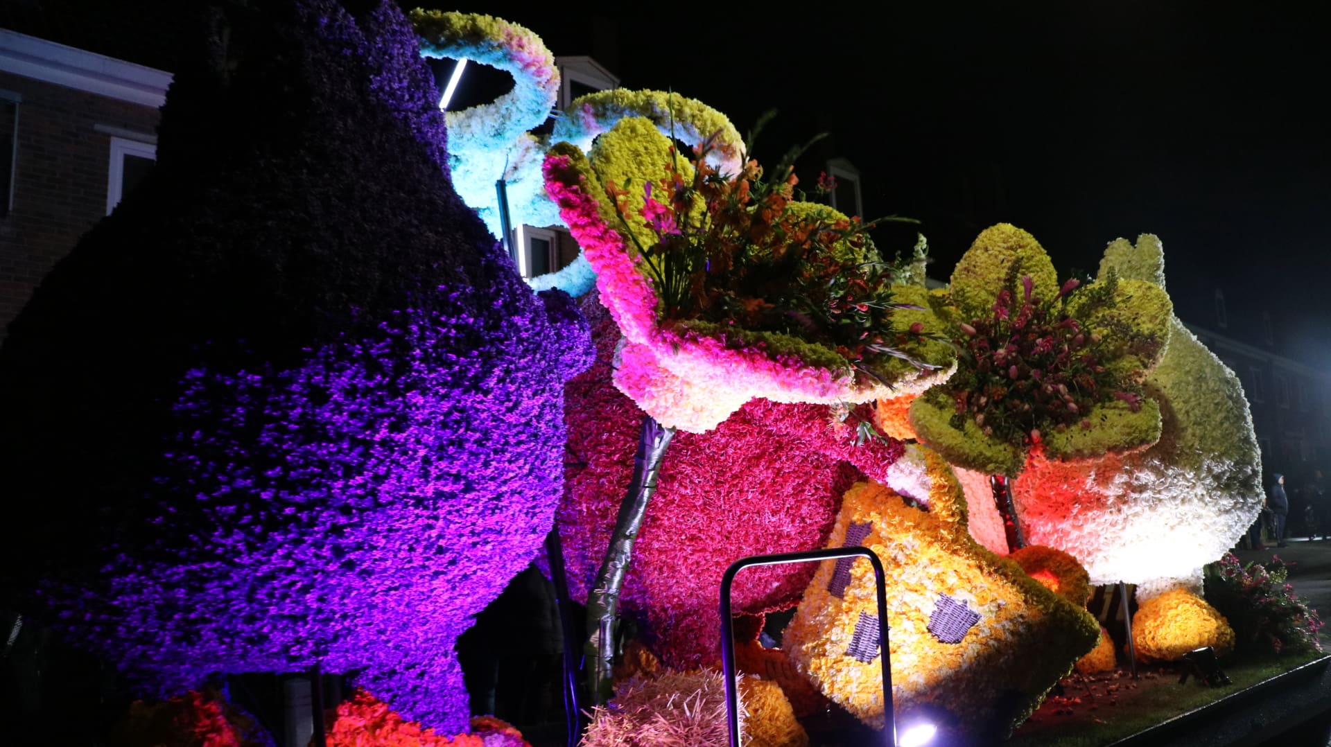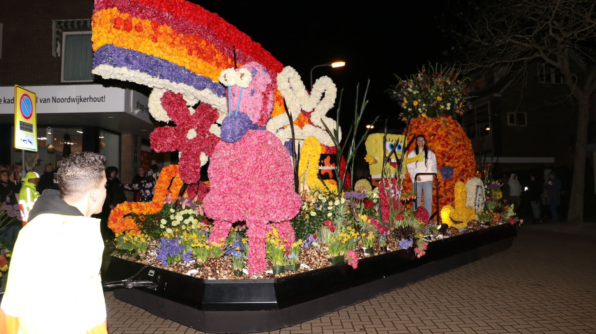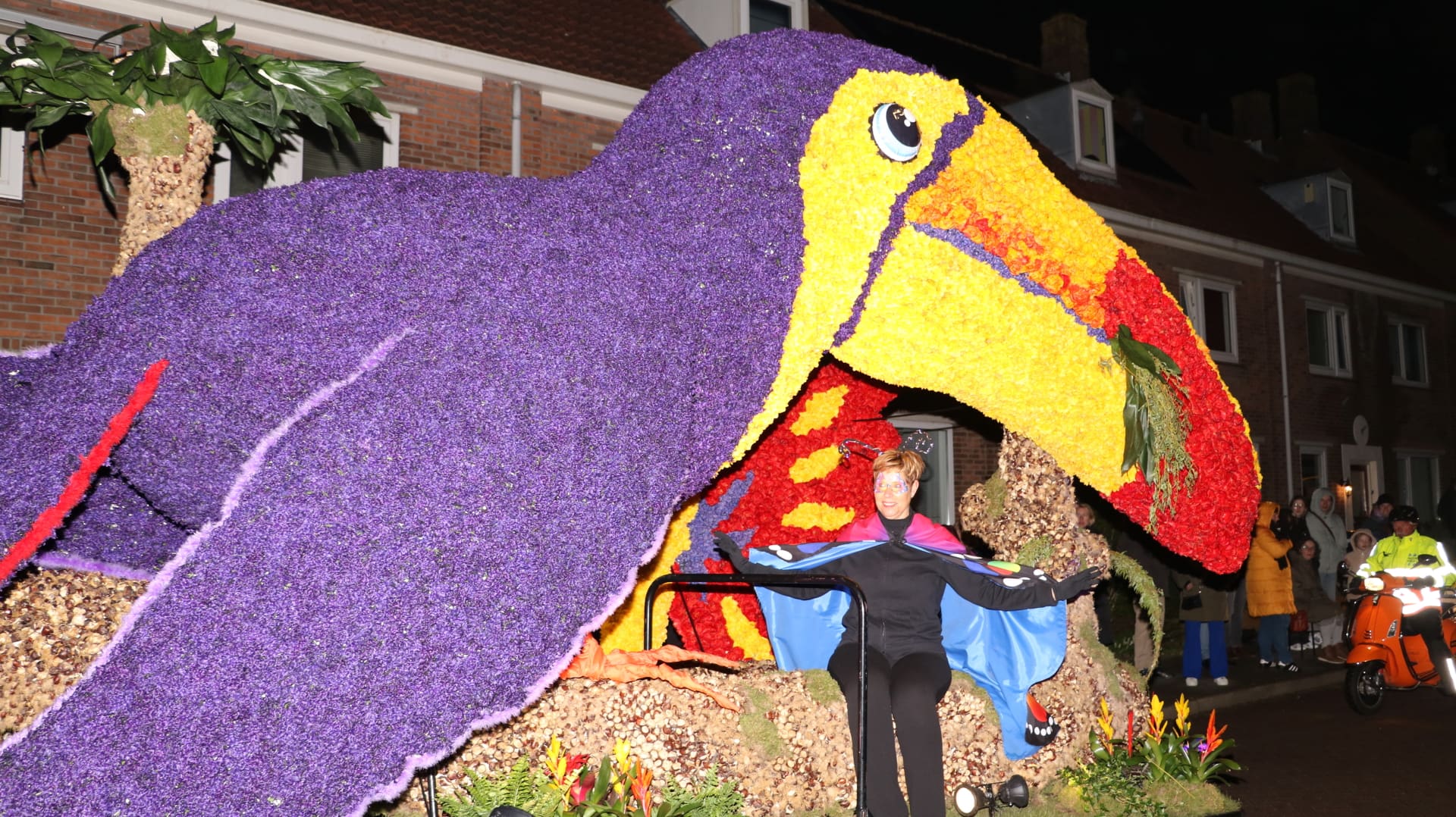 Noordwijkerhout – Met de Witte Kerk als prachtig decor trok het verlicht Bloemencorso van de Bollenstreek vrijdagavond door Noordwijkerhout. Het kon weer rekenen op de waardering van het publiek langs de kant. Het was koud, er waren iets minder hyacinten, maar het was weer prachtig.