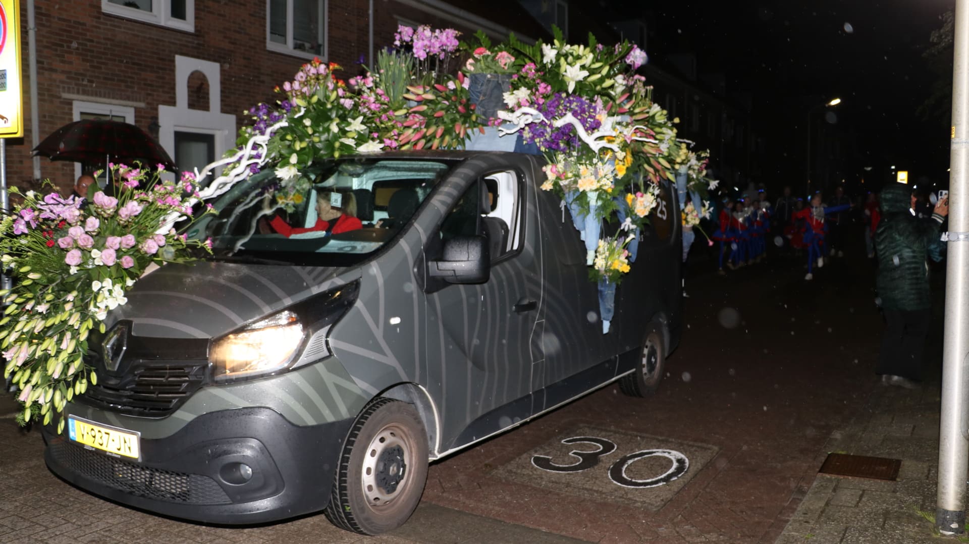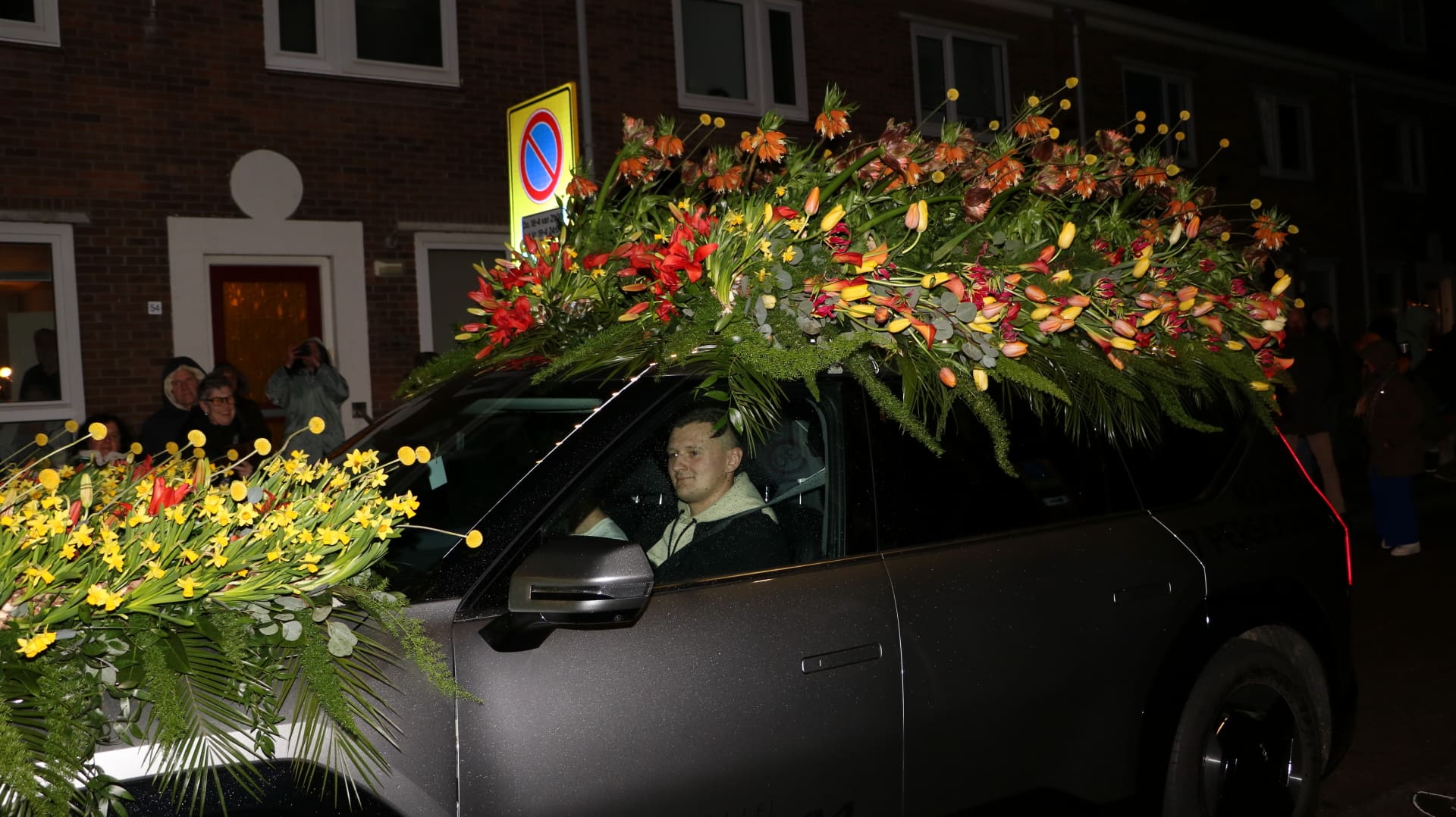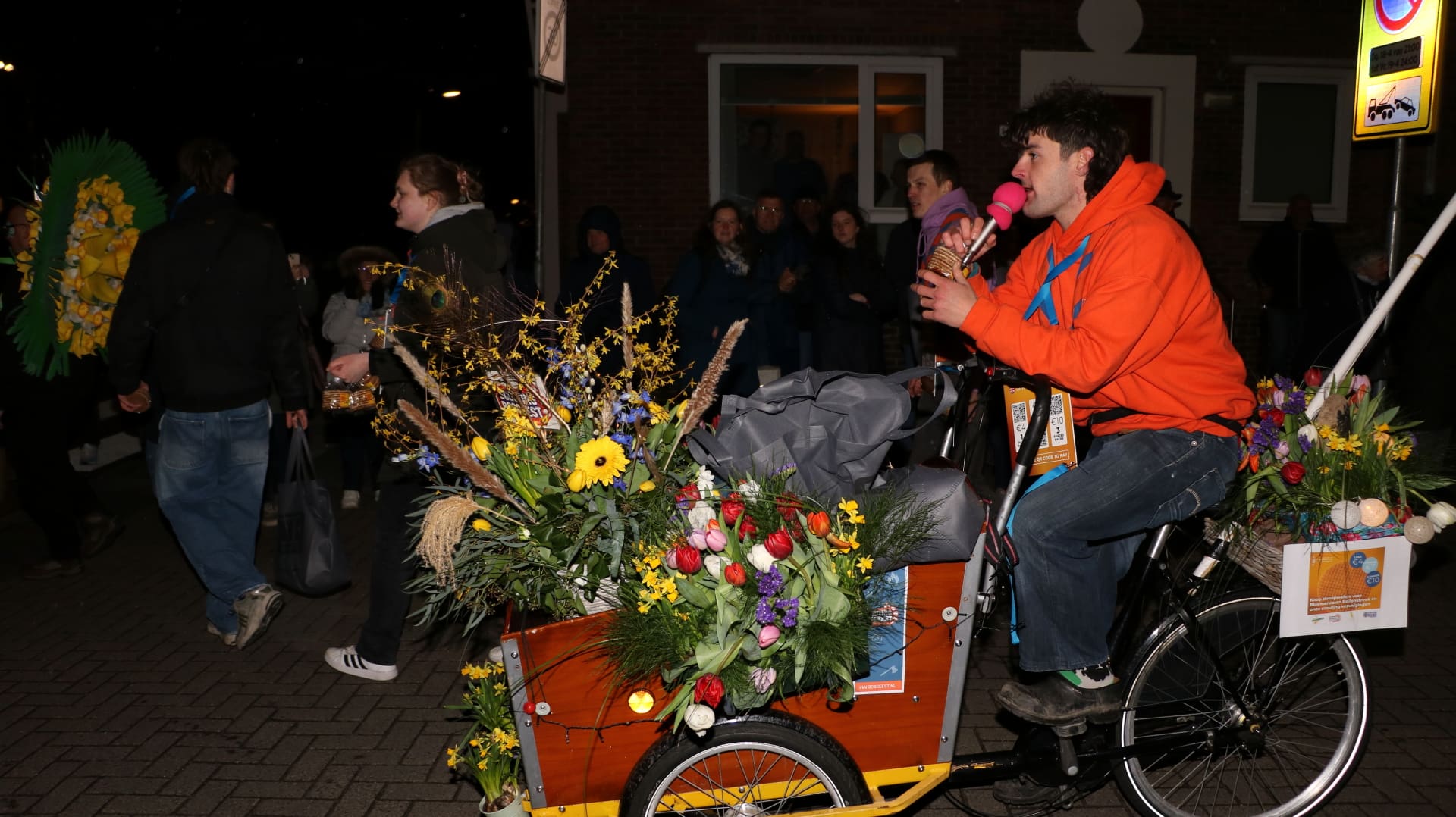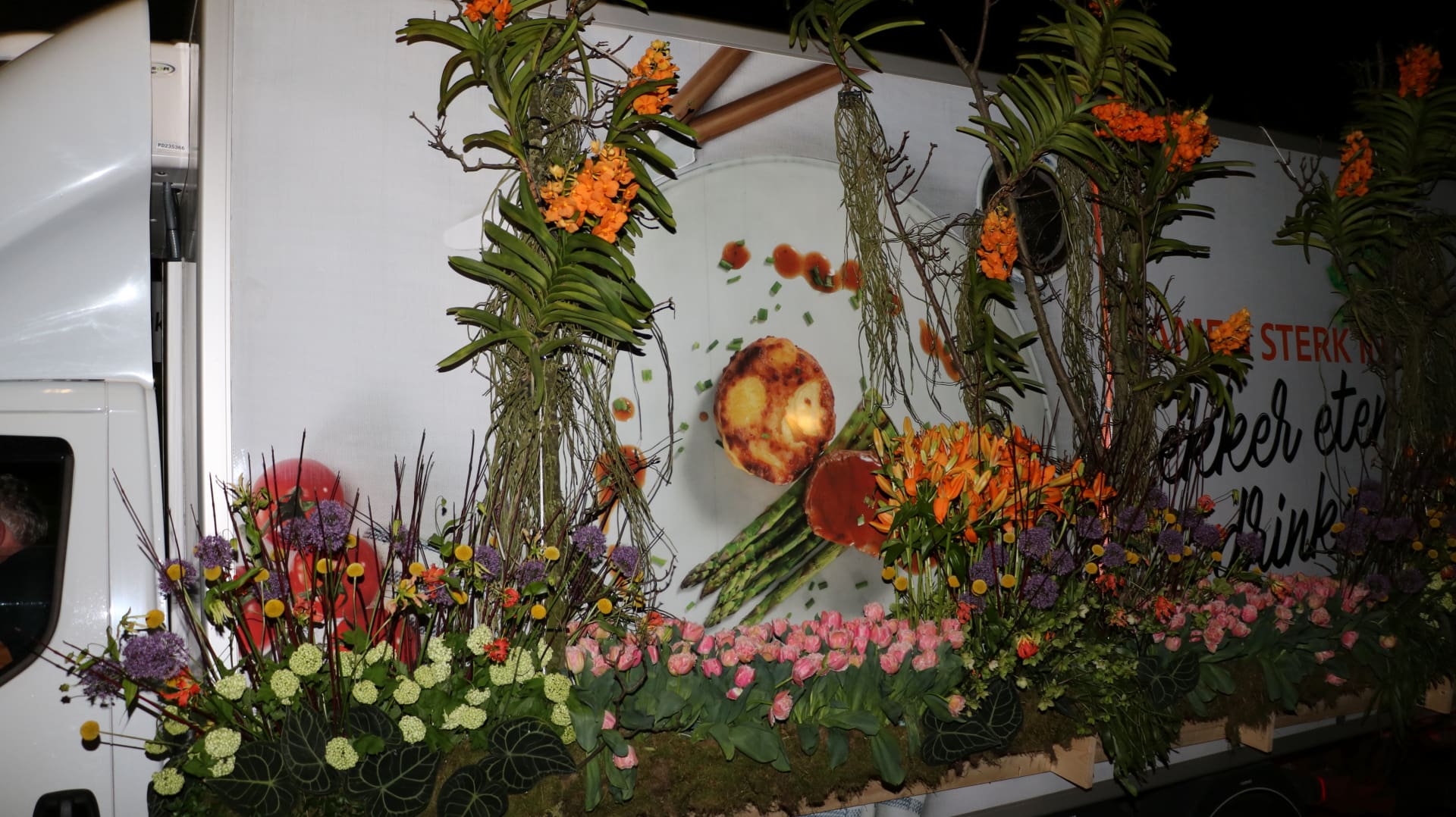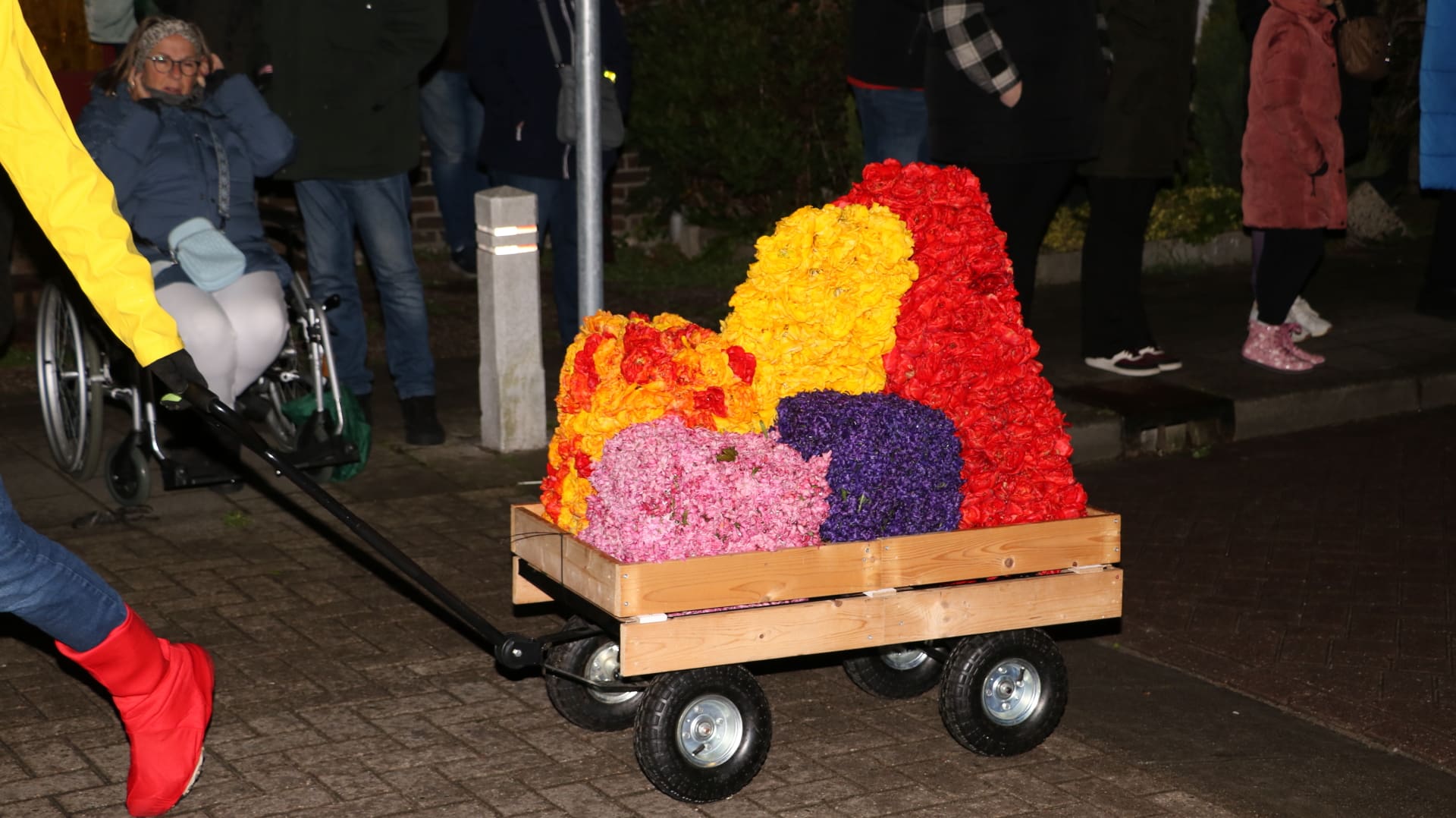Noordwijkerhout – Met de Witte Kerk als prachtig decor trok het verlicht Bloemencorso van de Bollenstreek vrijdagavond door Noordwijkerhout. Het kon weer rekenen op de waardering van het publiek langs de kant. Het was koud, er waren iets minder hyacinten, maar het was weer prachtig.