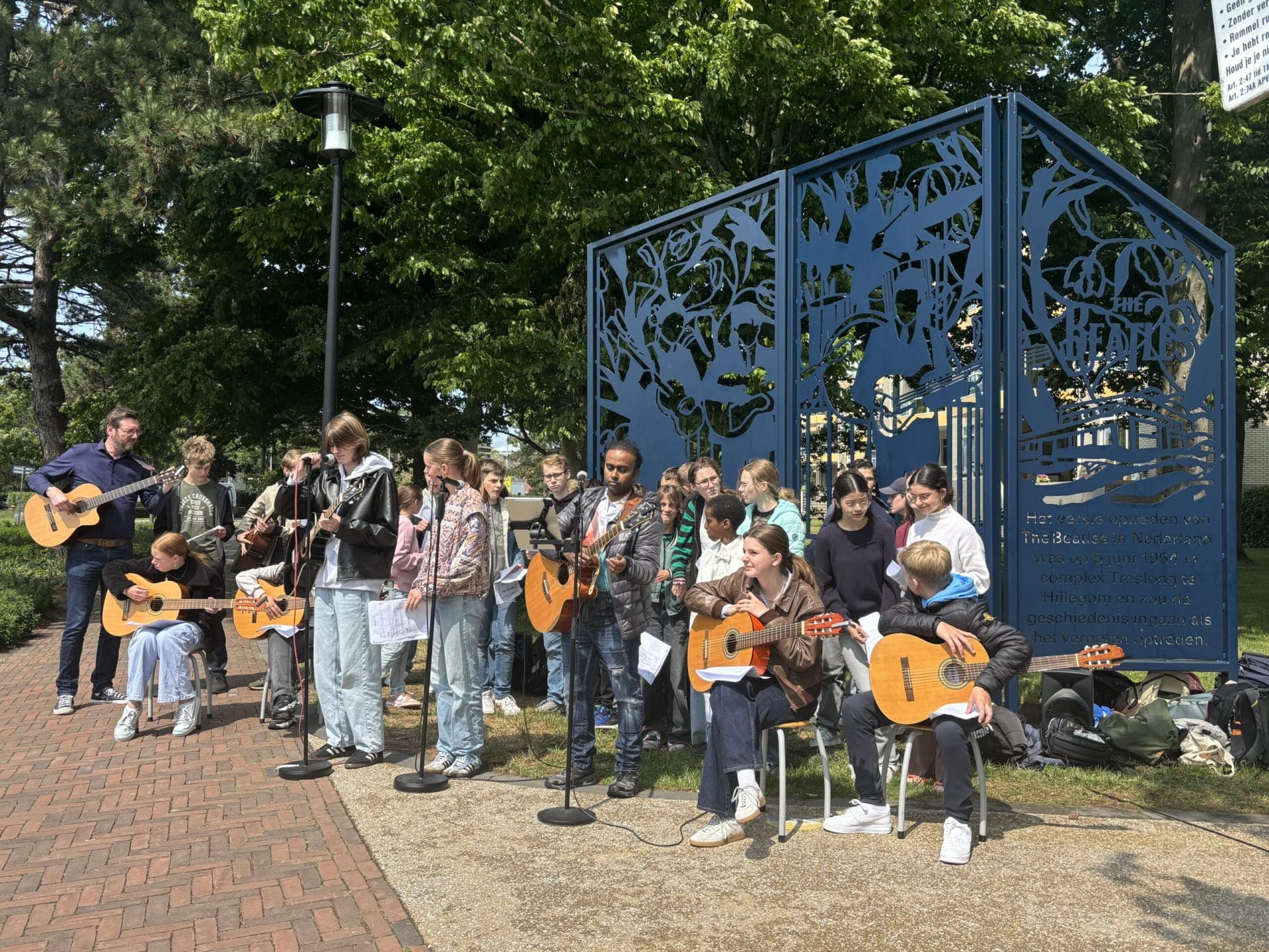 De onthulling van het vernieuwde bord werd net als vorig jaar muzikaal begeleid door leerlingen van het  Fioretticollege. Zij speelden Beatlesnummers.