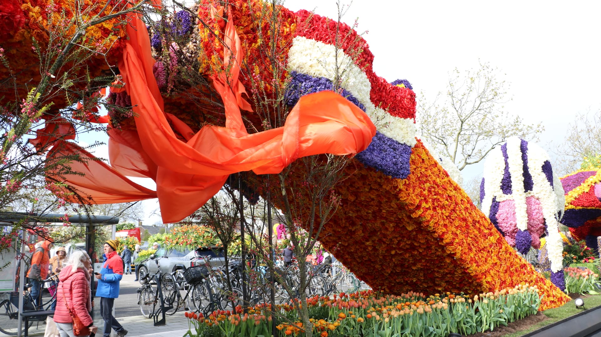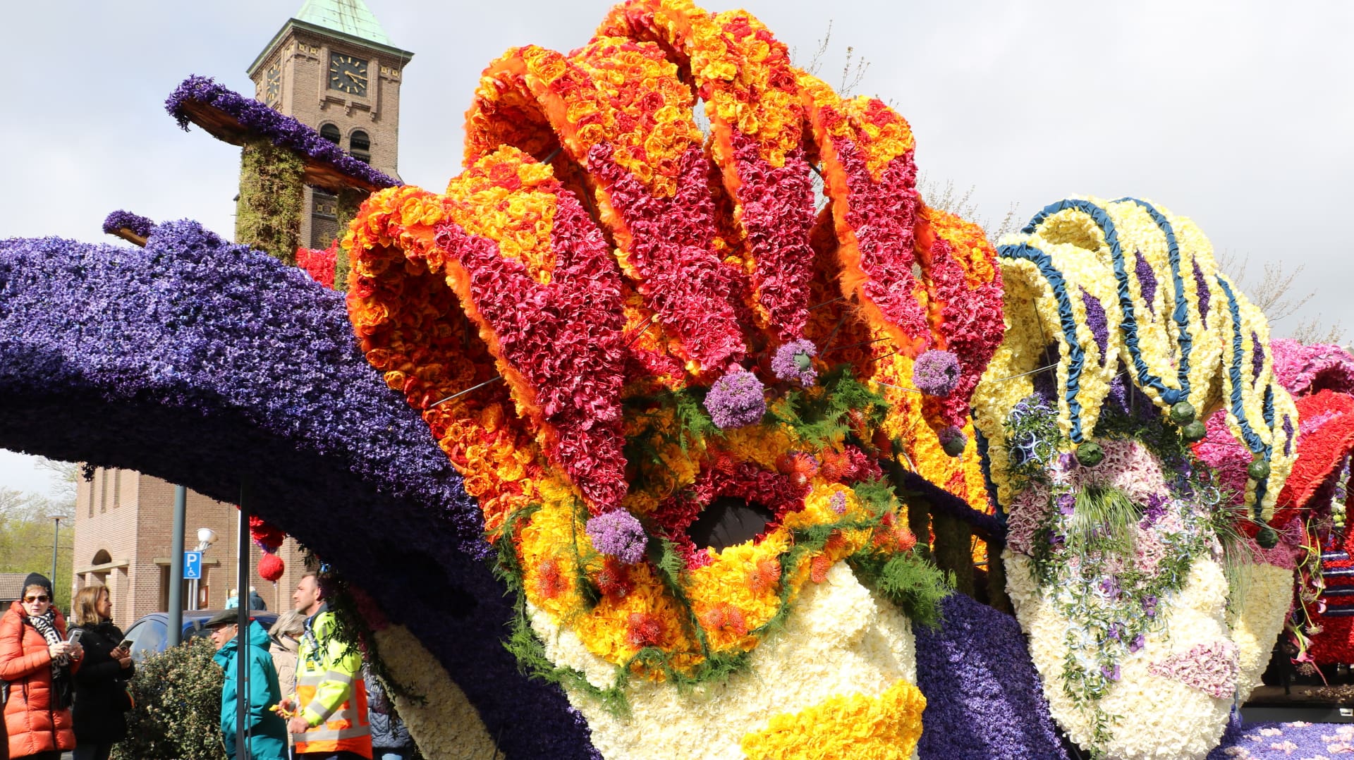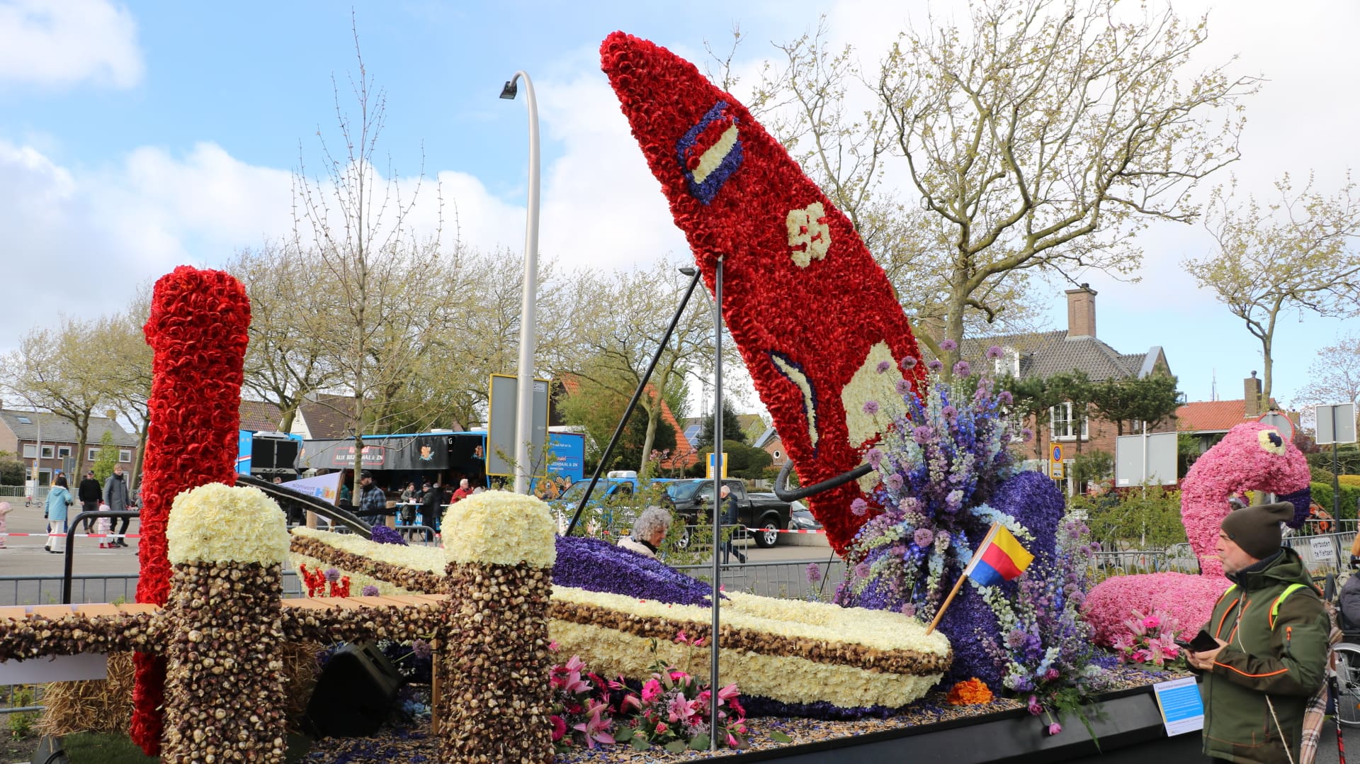 Noordwijkerhout – Het Bloemencorso is vrijdagmiddag aangekomen in Noordwijkerhout. De tocht verliep redelijk goed met weinig vertraging. De organisatie van het corso was nerveus voor eventuele schade die de sterke wind kon veroorzaken, maar de wagens leken goed intact te zijn.