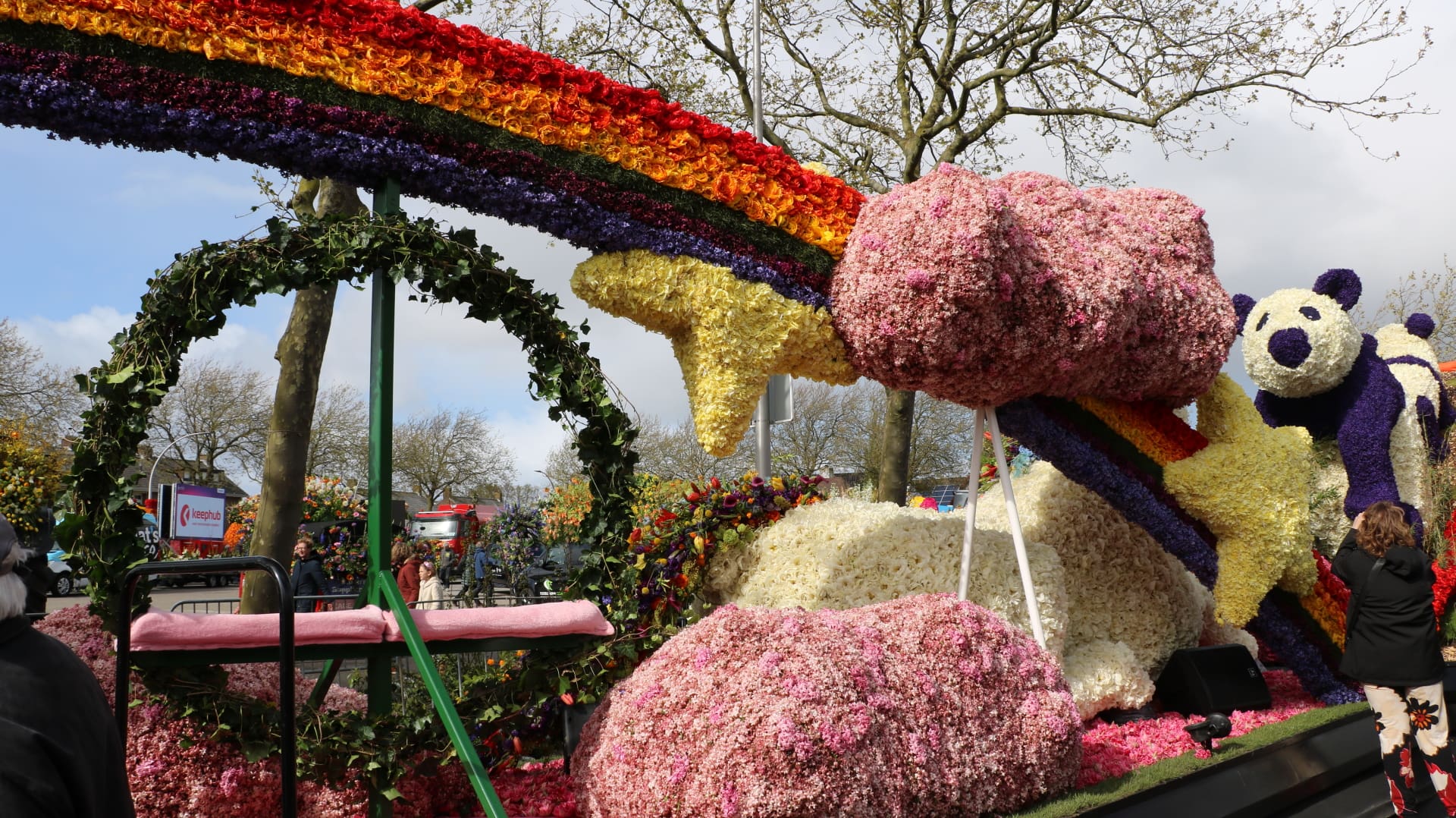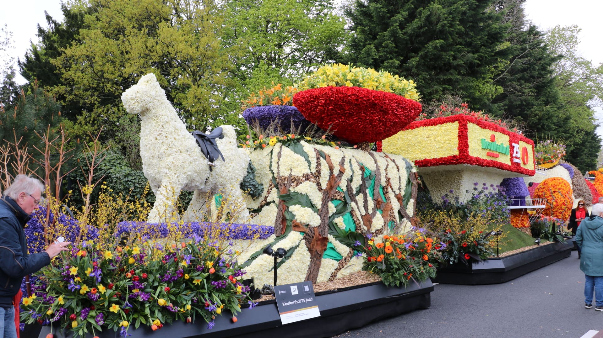 Eenmaal in Noordwijkerhout werden alle stilstaande praalwagens goed bekeken door het publiek. Ook werd er door een jury gecontroleerd of alle wagens nog heel waren. Doordat de bloei dit jaar eerder is begonnen, zijn er duidelijk minder hyacinten dan normaal.