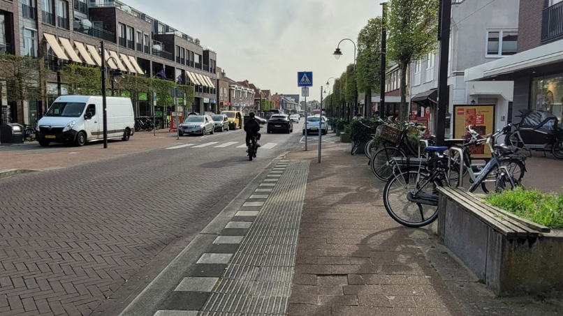 ‘De verhoogde trottoirband bij de halte zodat passagier gelijkvloers de bus in kunnen stappen is er nog steeds. Terwijl in de rest van de Herenstraat geen stoepranden zijn. Mensen zijn hier niet op bedacht en dat kan leiden tot ongelukken.’