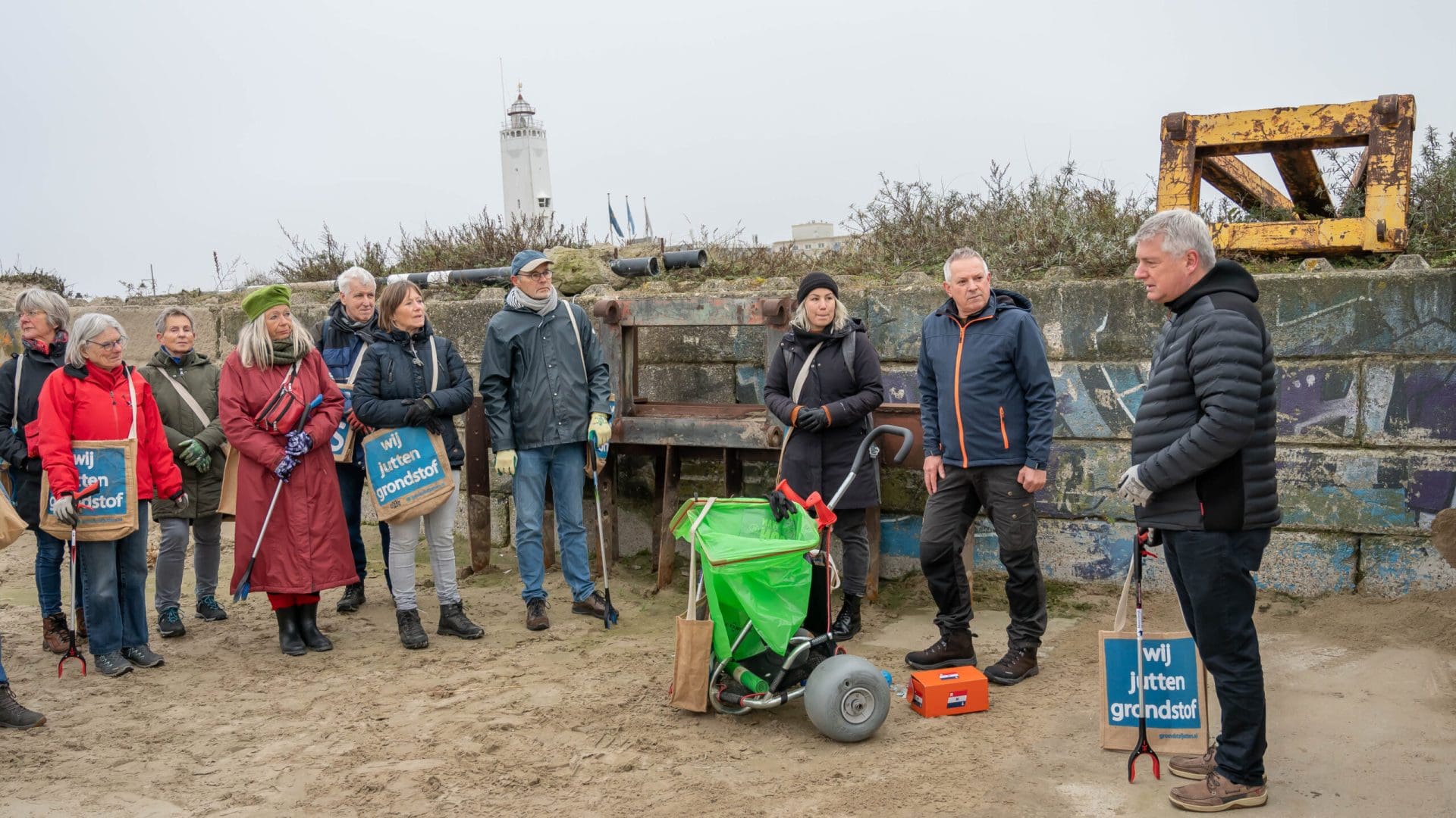 De groep van zo’n 30 jutters komt bijna elke vrijdagochtend samen op verschillende punten aan de Noordwijkse kust. Bij aankomst krijgen zij een speciale jut-tas, handschoenen en een grijper om het strand schoon te maken van sigarettenpeuken, verpakkingen, touwen en ander afval. De jutters geven aan dat hun aanpak vooral bestaat uit het opmerken van afwijkende kleuren en vormen, waardoor ze snel het afval kunnen identificeren.