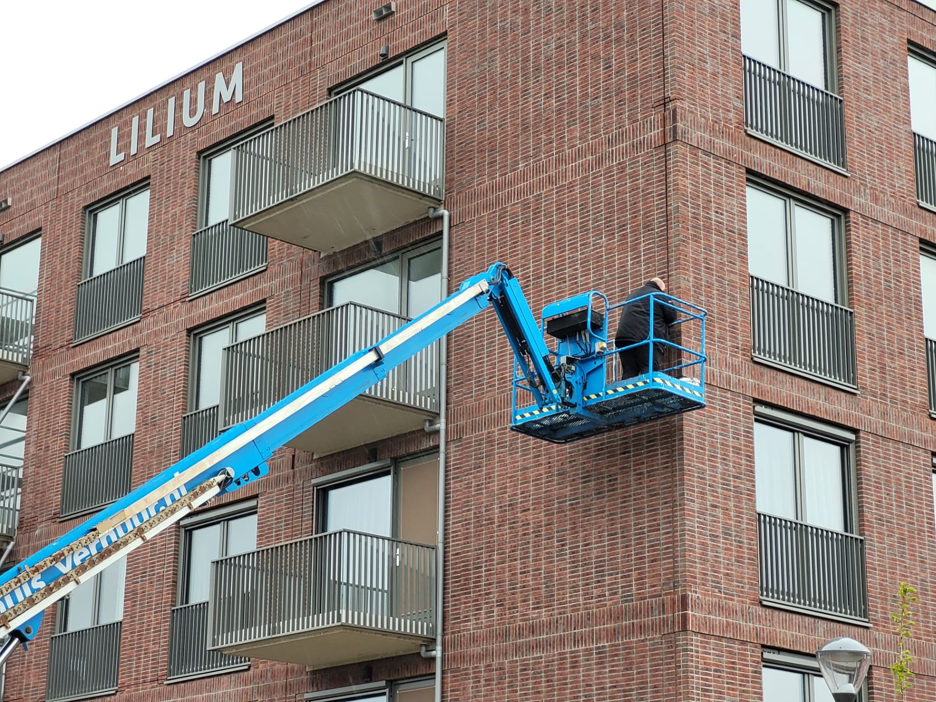 Werkzaamheden aan gevels vanwege lekkages. Foto: Mark Kool.