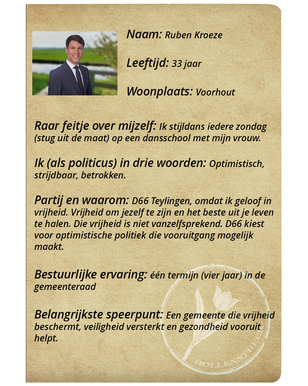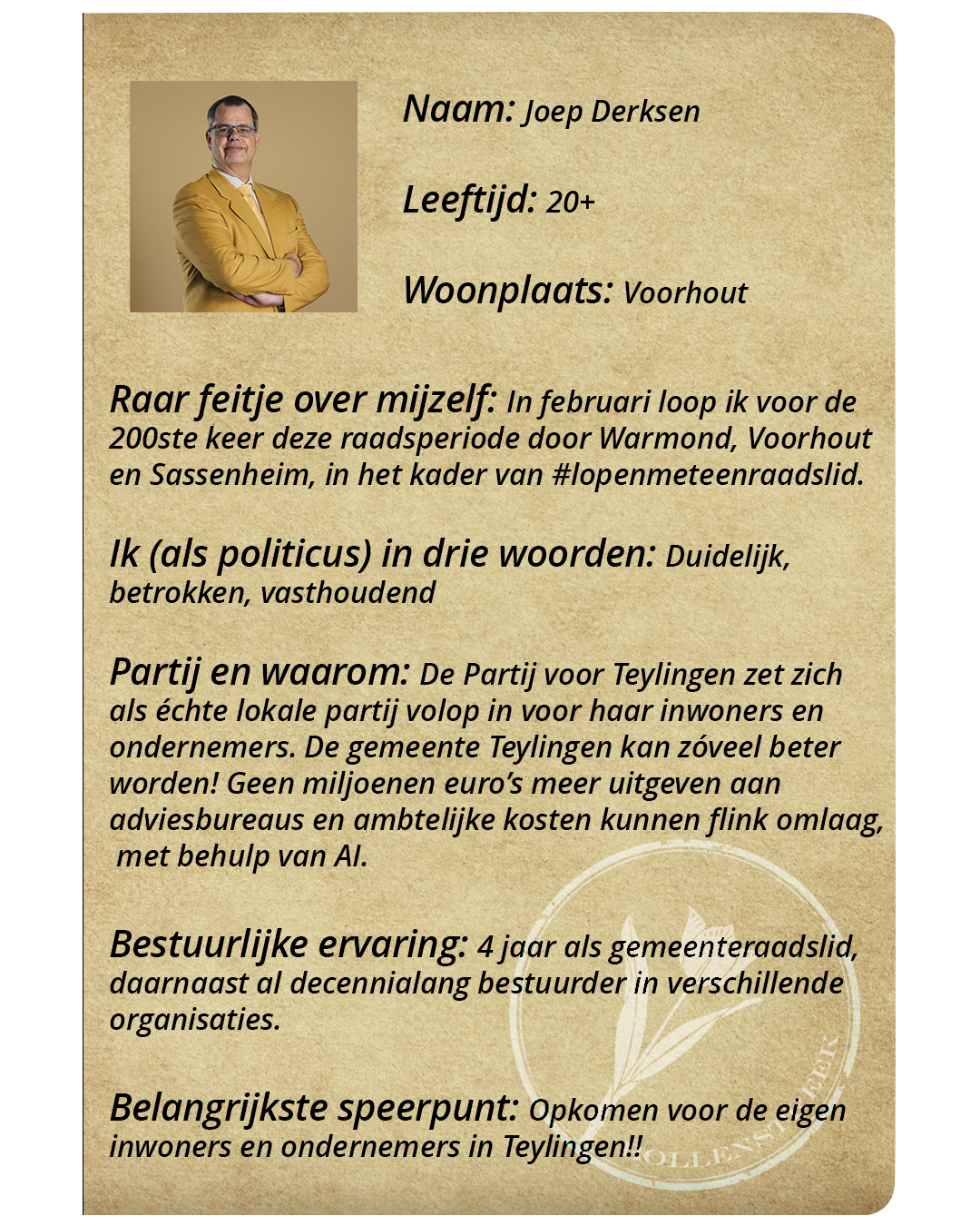 Teylingen – De gemeenteraadsverkiezingen komen eraan. Inwoners uit de Bollenstreek mogen op woensdag 18 maart 2026 naar de stembus om te bepalen welke politieke partijen er in hun gemeente aan de macht komen. Bollenstreek Omroep werkt op meerdere manieren toe naar de verkiezingen. We stellen u de Teylingse lijsttrekkers voor en vroegen de partijen naar hun hoogte- en dieptepunten van de afgelopen vier jaar.