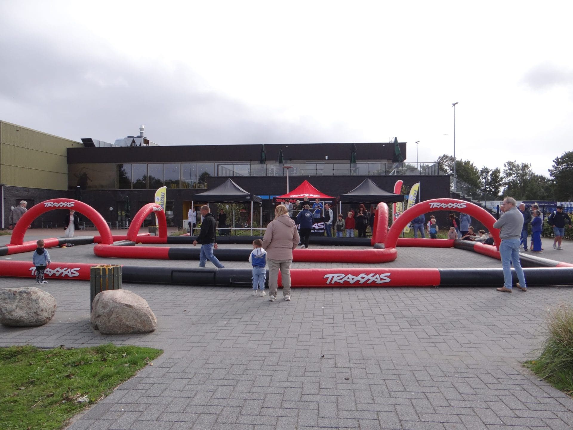 Het evenement bij de manege is één van de 22 activiteiten die zondag op het programma stonden tijdens de traditionele feestweek in Lisse. Ook dit jaar wordt het georganiseerd door Harddraverijvereniging Lisse & Omstreken en de medewerkers staan herkenbaar in hun blauwe vest met het logo van de harddraverij bij diverse evenementen om te helpen. In de ochtend, toen het zonnetje nog scheen en er een strakblauwe hemel was, konden kinderen op het terrein van voetbalvereniging FC Lisse deelnemen aan een 4-tegen-4-voetbaltoernooi, maar ze konden ook tegen elkaar racen met radiografisch bestuurbare autootjes. Op een langwerpige baan, die ter beschikking is gesteld door RC Racing, staan tien autootjes die elk door middel van een kleine antenne aan de achterkant in verbinding staan met een controller waarmee kinderen tegen een kleine financiële bijdrage kunnen racen.