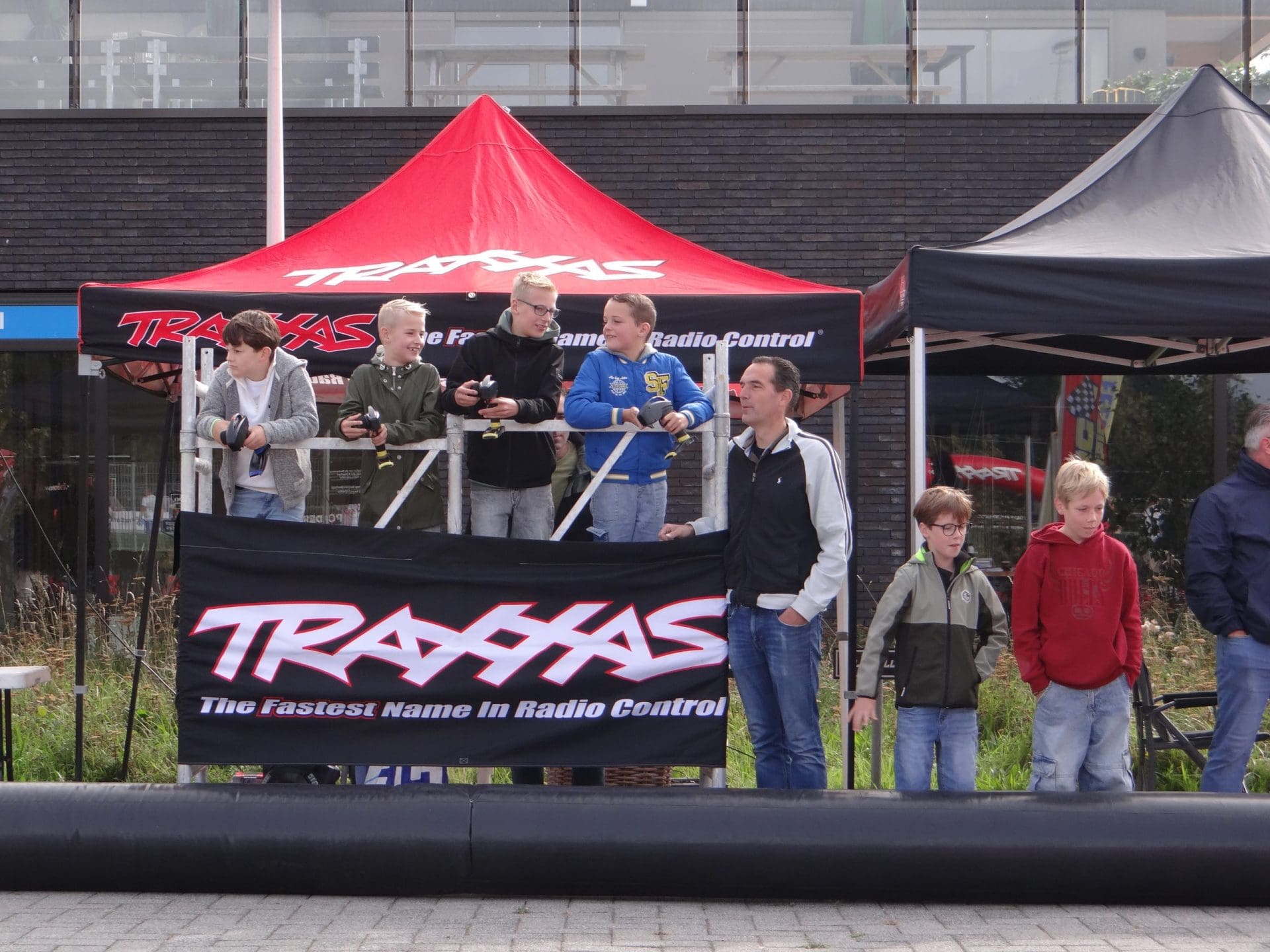 Op een verhoogd podium dat aan de baan grenst, staan drie kinderen die proberen hun auto in eerste instantie in de baan te houden. “Het is ook bedoeld om de kinderen kennis te laten maken met deze sport. Ze zijn nog jong en het zou leuk zijn als ze zich inschrijven bij ons om hier meer mee te doen,” zegt Bas Castien. Hij is één van de organisatoren van de feestweek, maar hij staat hier ook met een reden: “Mijn schoonzoon is meervoudig Nederlands kampioen modelracen en hij kwam met het idee om dit te promoten. Het groepje waartegen hij racet wordt toch kleiner en hopelijk vinden de kinderen het zo leuk dat ze zich gaan inschrijven,” zegt Bas, terwijl er net twee kinderen aankomen lopen die zich bij het tafeltje melden om te kunnen racen.