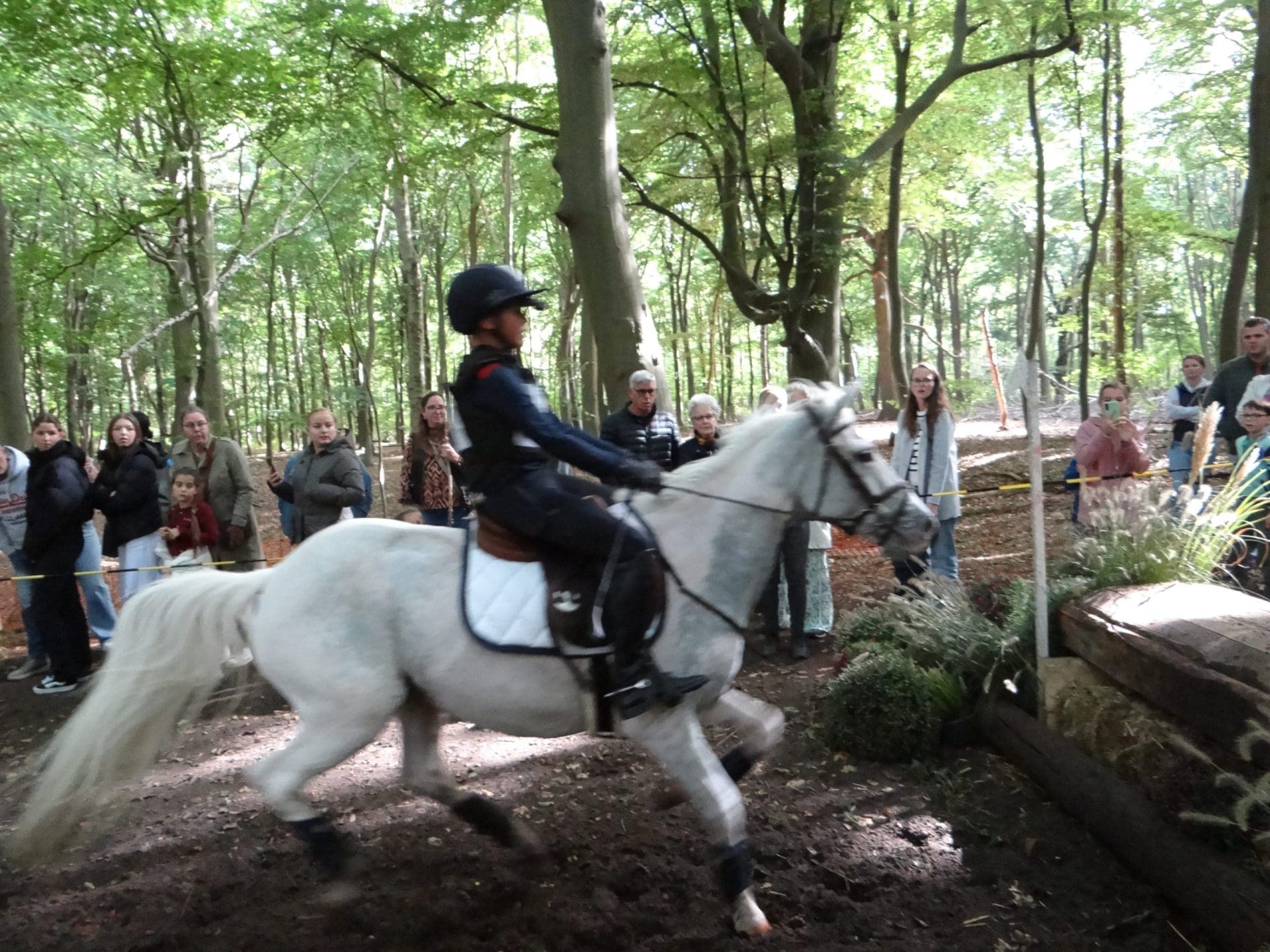 Lisse – “Voor diegenen die net aankomen, we hebben wat problemen met de klok dus we beginnen wat later,” zegt een oudere meneer, gekleed in een grijze jas, tegen vier kinderen die op hun paard rondjes rijden bij de start van het onderdeel eventing. In de bossen bij paardensportvereniging St. Hubertus-Lisse is de persoon die het parcours heeft gebouwd naar de startlocatie gefietst om de klok weer goed te kalibreren, zodat het tijdstip waarop de persoon bij de start wegrijdt ook gelijk loopt met de finish. Beide heren kijken niet blij en er is via de portofoon veel contact met collega’s bij de finish, want de klok blijft met beide wijzers bij de twaalf staan. De klok wordt nog één keer van de houten paal gehaald en er wordt op een rood knopje gedrukt om het nog één keer te proberen: tevergeefs. “Dan maar op de ouderwetse manier met de telefoon,” zuchten ze. Met een vertraging van ongeveer tien minuten begint de eerste deelneemster aan het onderdeel.