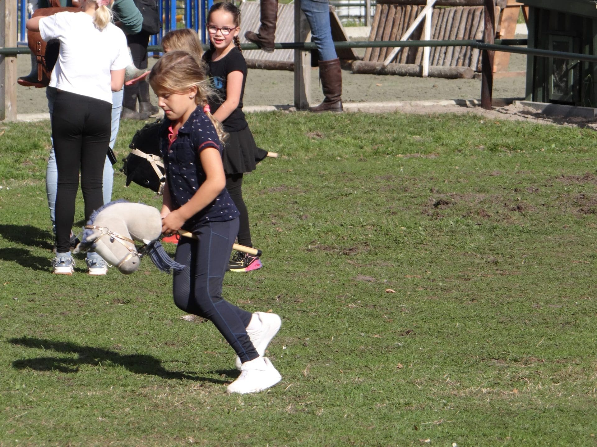 De laatste deelneemster van het evenement draait net met haar paard de uitrijdbak in, als in de manege een nieuw onderdeel begint: Hobbyhorsing. Een grote groep kinderen tot de leeftijd van 10 jaar probeert individueel met een “speelgoedpaard” een parcours af te leggen waarbij ze ook over hindernissen moeten springen. “Iedereen die meedoet kan zelf aangeven of hij over 30, 50 of 70 centimeter wil springen. Het gaat er ook om of je zo sierlijk en elegant mogelijk het parcours aflegt,” zegt een mevrouw door de speakers. Aan de zijlijn proberen ouders hun kind aan te moedigen en er is zelfs enige hilariteit als niet alle kinderen de route van het parcours volgen en hun eigen weg gaan. De feestweek in Lisse duurt nog tot donderdag 25 september en informatie over wat er op welke dag te doen is, kan men vinden op: https://www.hdv-lisse.nl/pagina/programmaboekje/.
