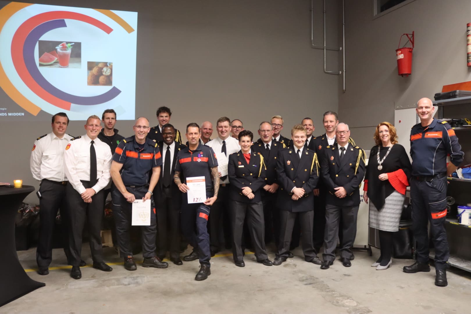Voorhout – De Voorhoutse brandweer heeft vrijdagavond vijf brandweerlieden en burgemeester Breuer in het zonnetje gezet bij de jaarlijkse korpsavond. In de kazerne aan de Nijverheidsweg kreeg de burgemeester een bloemetje vanwege haar tienjarig burgemeesterschap. Daarnaast kregen brandweerlieden Ton van Rijn en Bas van der Veld respectievelijk hun diploma’s bevelvoerder en manschap, werd Brian Verhulst in de schijnwerpers gezet voor zijn 12,5 jaar in brandweerdienst en kregen Werner van der Geest en Jan van der Plas een vrijwilligersmedaille, omdat ze al tien jaar vrijwillig bij de brandweer zitten. Ook blikte ploegchef Jaap van Beelen met een fotoserie terug op het afgelopen jaar. Uiteindelijk werd de avond afgesloten met een hapje en een drankje.