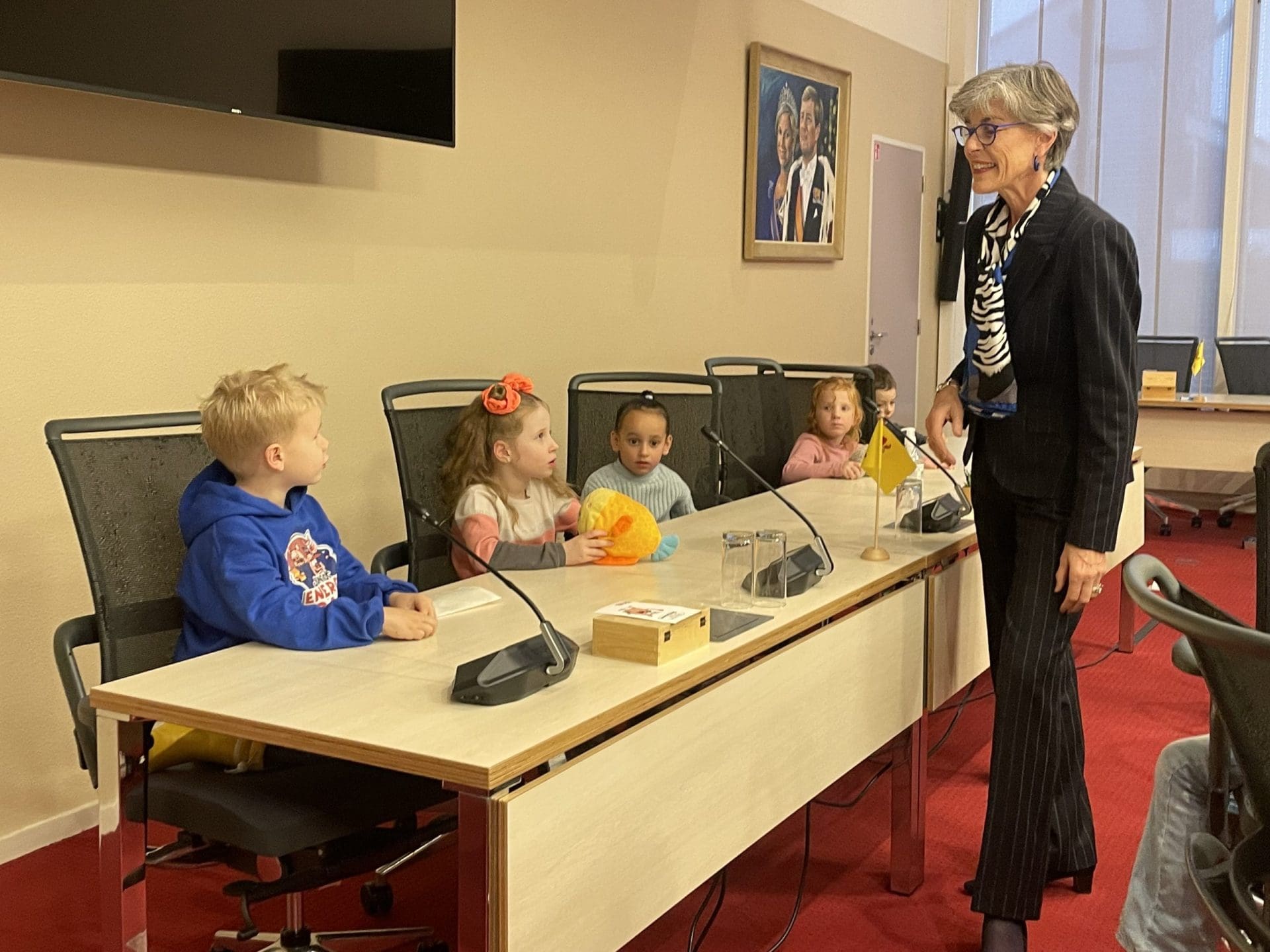 Voorhout – Kinderen van de buitenschoolse opvang Pieter van Slingerlandstraat kregen donderdagmiddag een diploma ‘energiecoach’. Deze kregen ze vanwege de lessen die zij hebben gevolgd over het milieu waarbij zij tips kregen over hoe je zuiniger kan leven. Bijvoorbeeld een warme trui aan doen in plaats van de verwarming aanzetten of minder lang douchen. Wethouder Heleen Hooij heeft elk kind de diploma persoonlijk overhandigd.