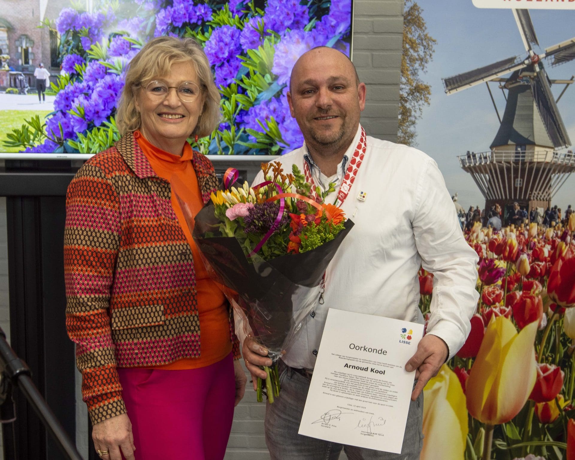 Arnoud Kool, vrijwilliger bij FC Lisse, is erkend voor zijn uitstekende werk als manager Facilitaire Zaken, waaronder het verbeteren van de velden en het werven van nieuwe vrijwilligers.