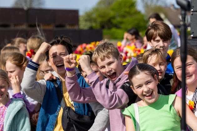 Hillegom – Het Vier de Lente festival gaat dit jaar niet door, toch was er een week voor het corso een muzikaal feest, dit keer voor 150 basisscholieren: het vroegbloeiconcert. Emma Heesters, Emilia Mabel, Jeffrey Parmentier en Robin Topper traden op, op de locatie van Vier de Lente.
