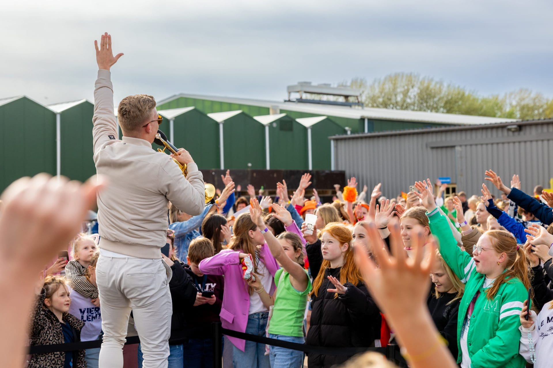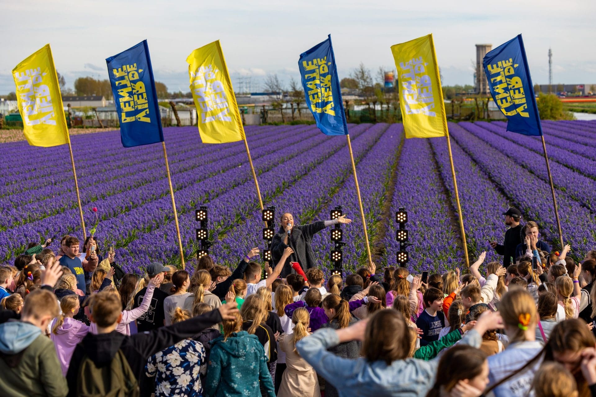Het terrein bij Tulpenschuur Hulsebosch was al volledig ingezaaid met tulpenbollen, in voorbereiding op het Vier de Lent Festival, dat dit jaar niet kon plaatsvinden. Daarom werd vrijdag op die locatie de lente in het klein gevierd door een besloten concert te organiseren voor zo’n 150 basisschoolleerlingen en jongeren aangesloten bij Welzijnskwartier uit de regio.