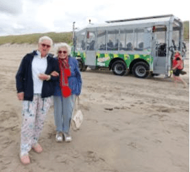 Voor een aantal deelnemers was het flink wat jaren geleden dat ze op het strand waren. Alle gasten genoten met volle teugen van de tocht met de Strandrups. Een enkeling ging zelfs de uitdaging aan om even met de voeten de zee in te gaan.